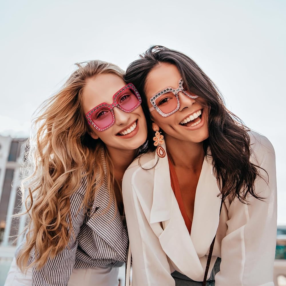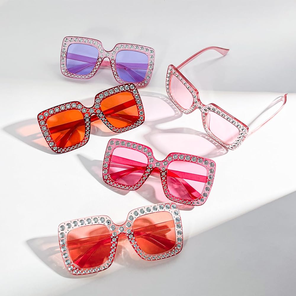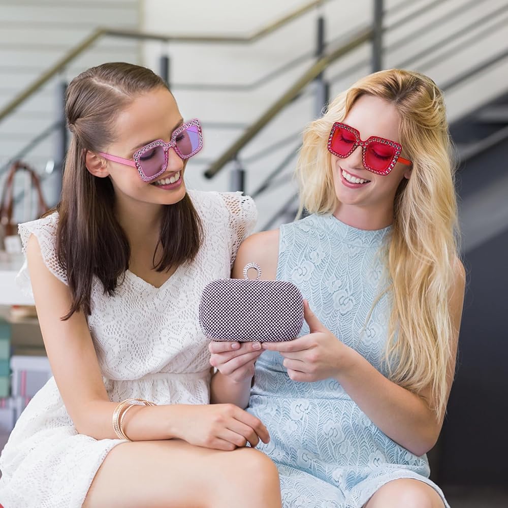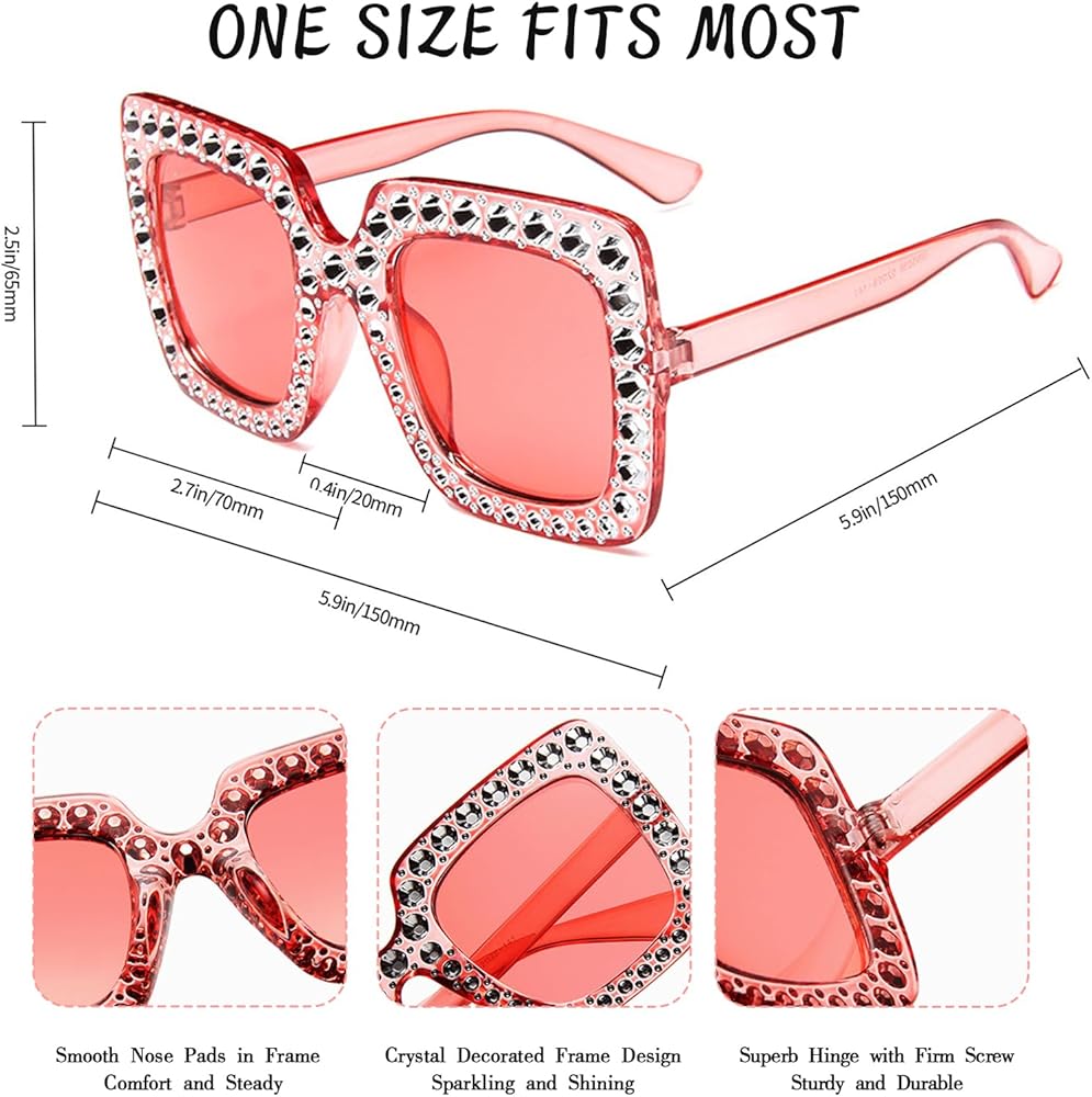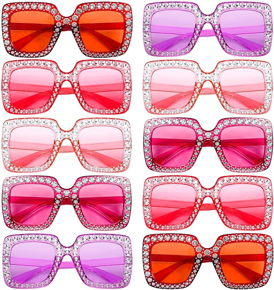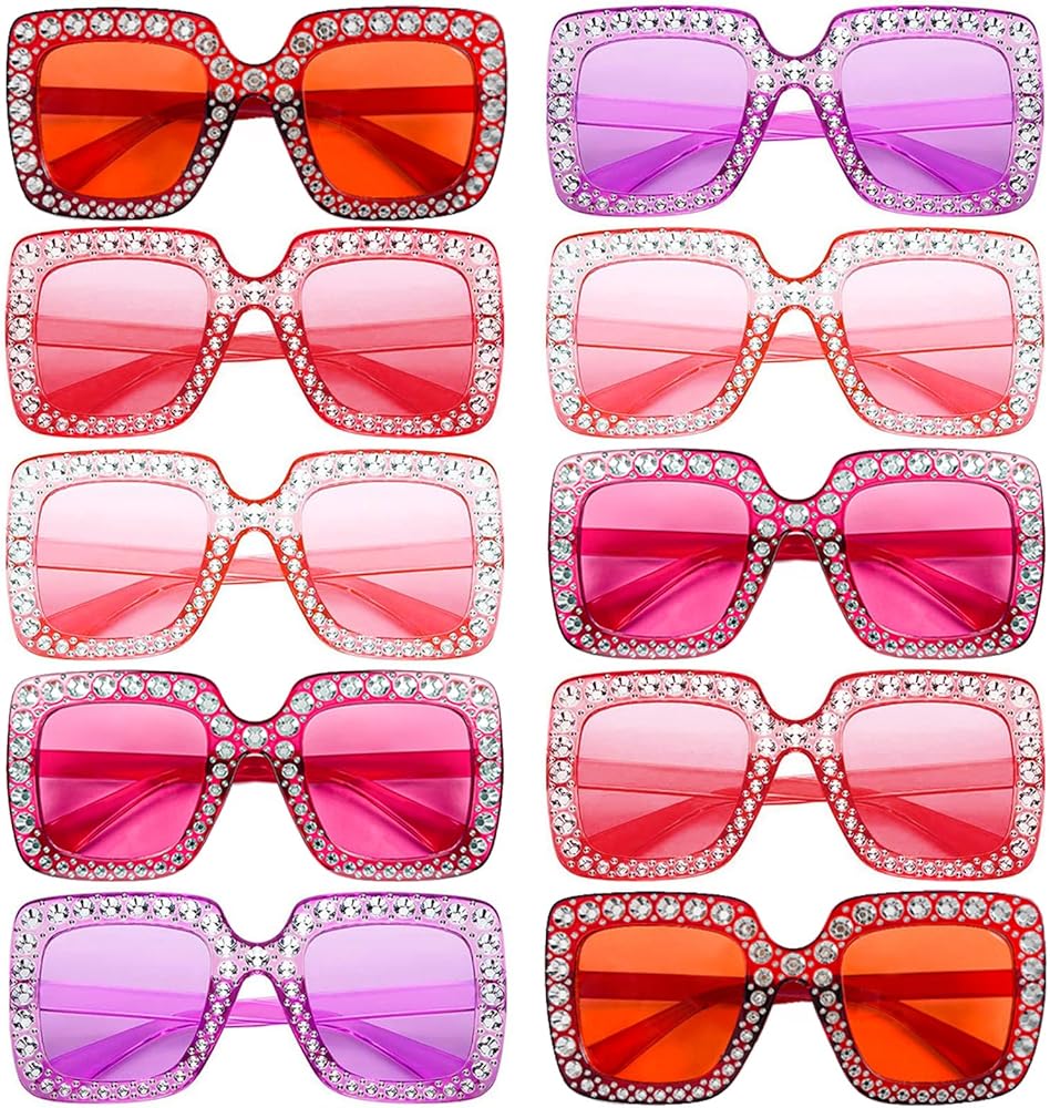 • SUPER VALUE SET - 10 pack of oversized crystal sunglasses for women with different colors, enough quantity to meet you different needs and share with friends and family in your party or usual life.