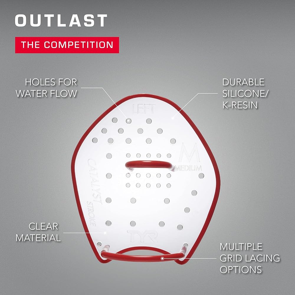 TYR Catalyst Stroke Swim Paddles - Adult Swim Paddles for Training - Durable, Flexible Hand Fins for Building Strength, Endurance, and Improving Technique