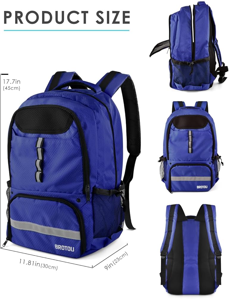 Large Capacity: BROTOU basketball backpack with Shoe & ball compartments is perfect for carrying sport gears, with big front zipped mesh compartment, ventilated to keep your shoes and drty gear separate. Size: 18.5"*12.2"*8.62", capacity: 35L; fits most size shoes