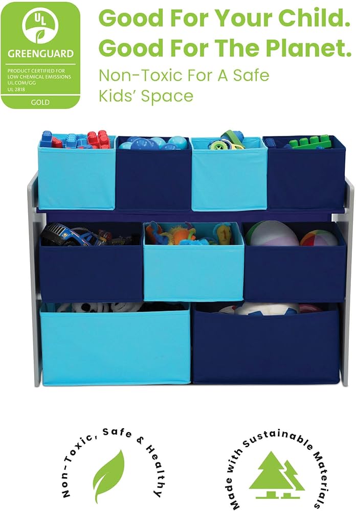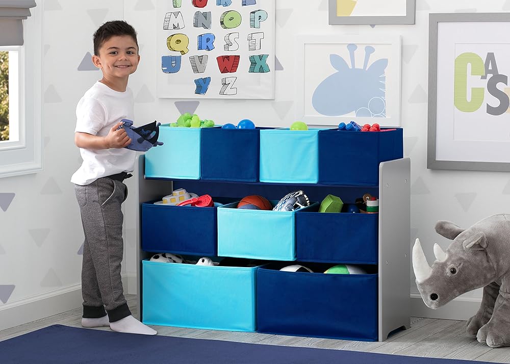 Your wall-crawling super hero will enjoy cleaning up with this Marvel Spider-Man Deluxe 9 Bin Design and Store Toy Organizer by Delta Children. Designed for little kids with big imaginations, this cool toy storage bin features colorful graphics of Spider-Man. Plus, this convenient toy bin comes with reusable vinyl cling stickers that allow your child to decorate the sides themselves. The stickers feature memorable characters and objects that will encourage kids to create magical scenes on the sides of the bin. Supported by a sturdy frame, this practical storage piece features nine fabric toy bins in three different sizes to stow a ton of toys. A great option for any bedroom, playroom or living room, the Spider-Man Deluxe 9 Bin Design and Store Toy Organizer by Delta Children will make cleaning up an adventure each and every day.