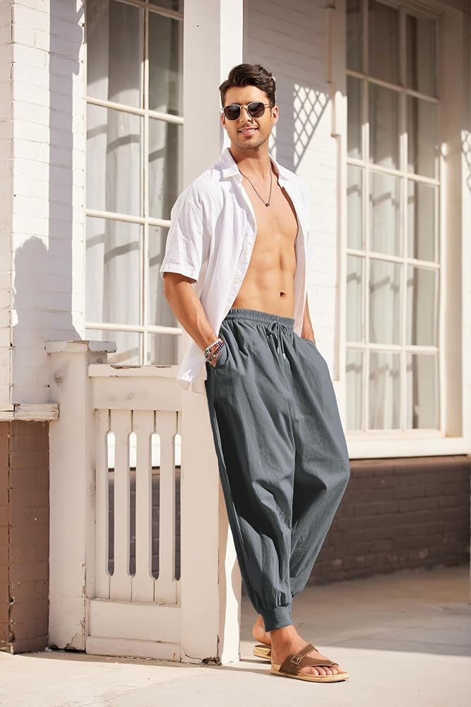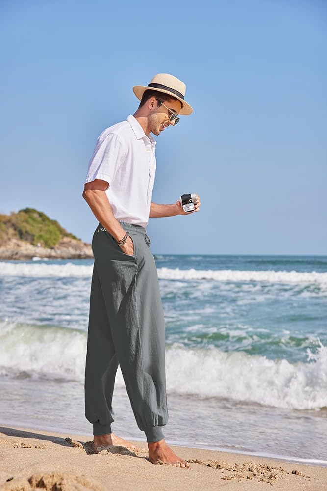 EASY TO MATCH - Various colors for you to choose from. These cotton linen pants can be easily paired with a casual T-shirt and sneakers to create a casual look, or paired with a beach shirt and sandals for a vacation style.
