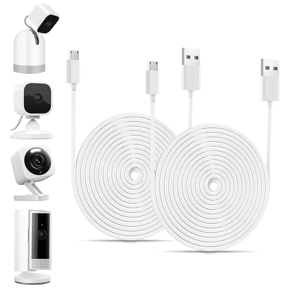 16 FT Camera Charger Extension Cable Compatible with Ring Indoor Cam (2nd Gen), Blink Mini, Blink Mini Pan Tilt, WYZE Cam V4/OG, Micro USB Extension Cable, Waterproof Camera Power Cord, 2 Pack