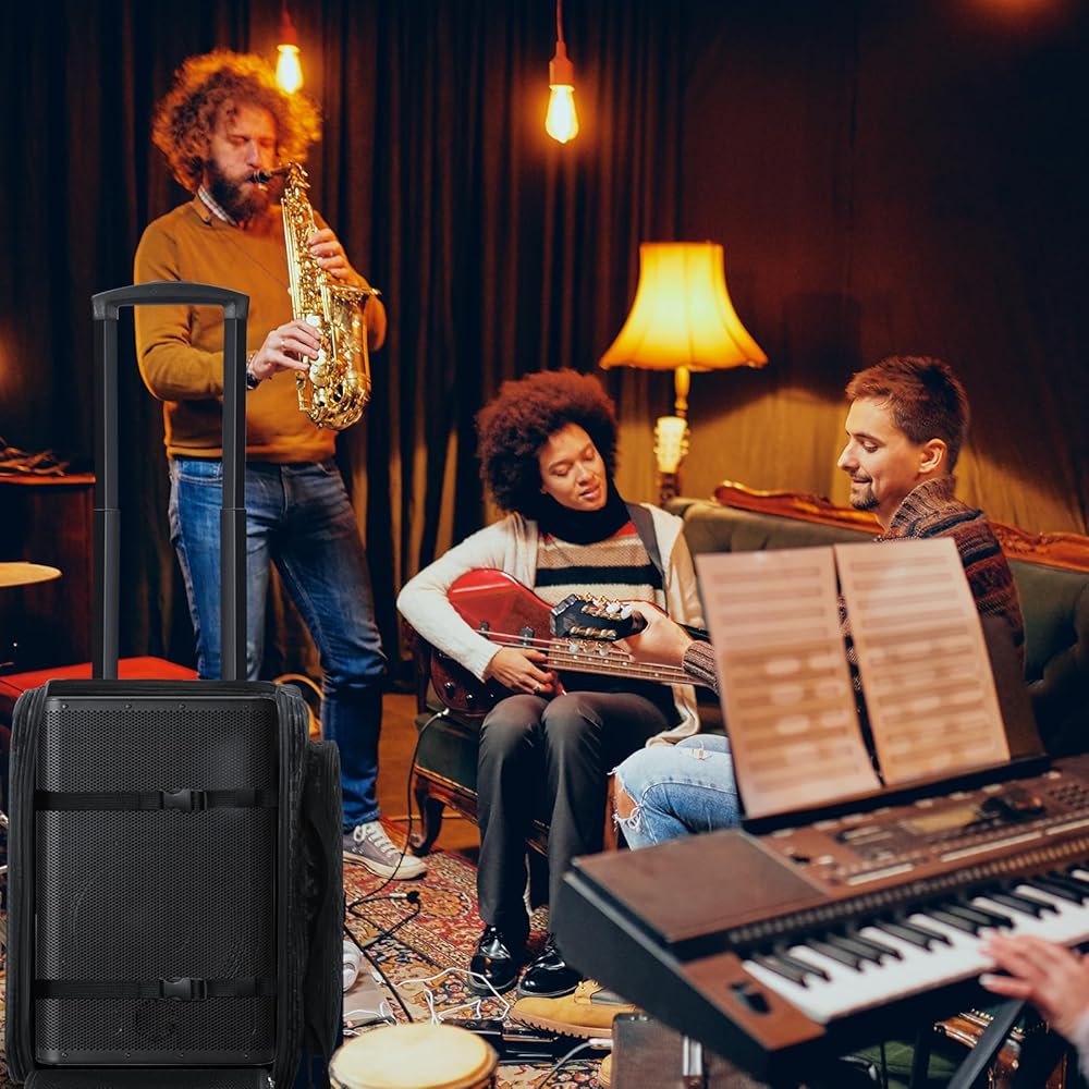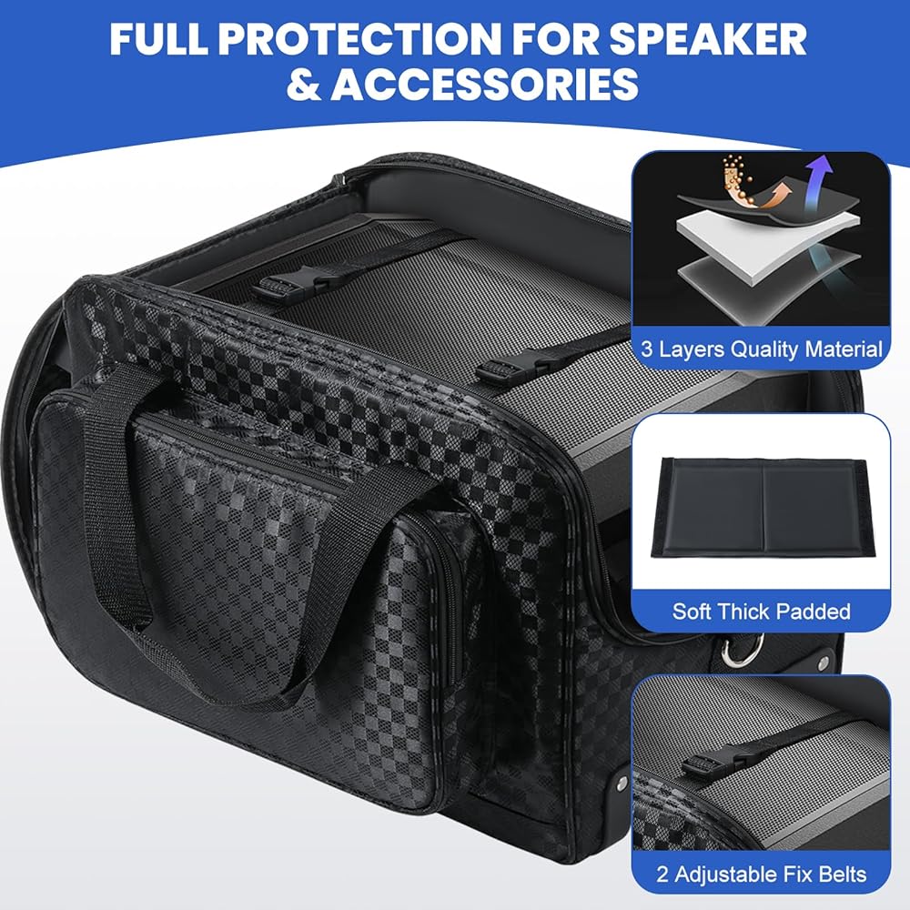 【Sturdy to Use】The speaker bag with Wheels is made of 1680D oxford fabric, which is very strong. With fine workmanship, quality zipper and tight stitching, the speaker carrying case is daurable to use.
