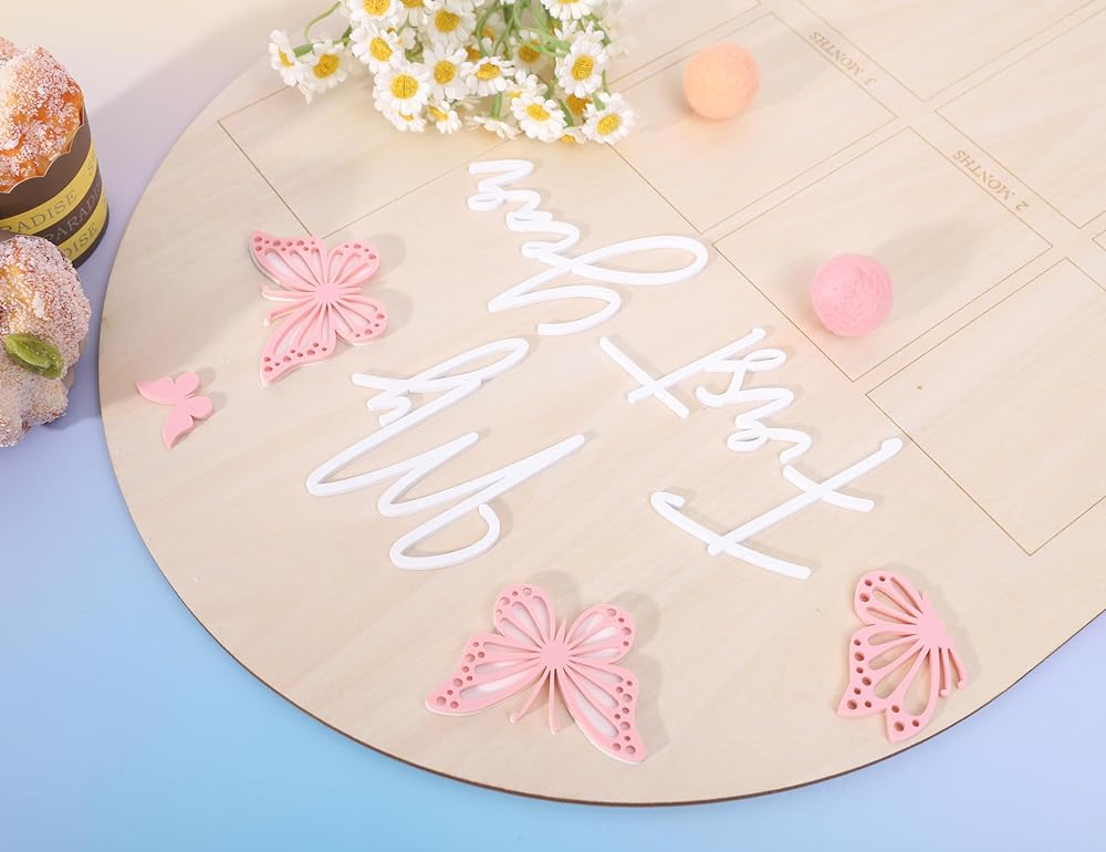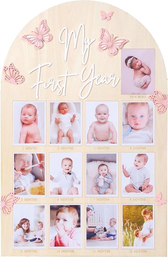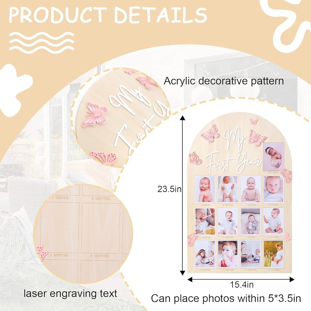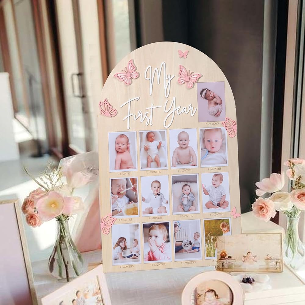 - My First Year Wood Photo Board - Butterfly 1st Birthday Party Decorations,One Year Photo Milestone Board,Baby Girl 1-12 Months Photo Wooden Board,Butterfly Milestone Board Baby Shower