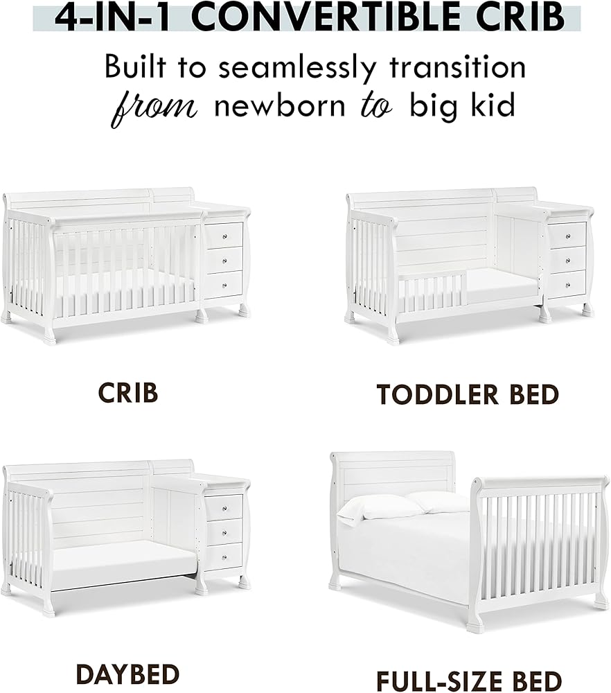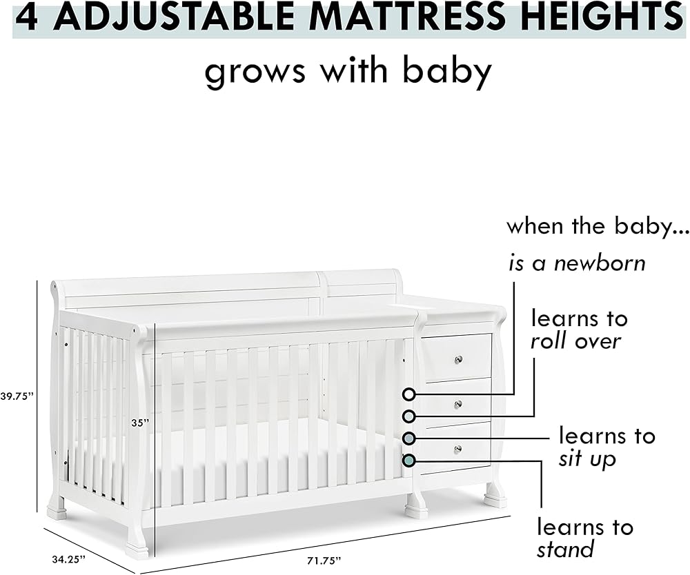 GROWS WITH BABY: Four adjustable mattress positions that can be lowered as your baby begins to sit and stand. Easily converts to toddler bed, daybed, and full-size bed (toddler conversion kit #M3099 and full-size conversion kit #M5789 sold separately)