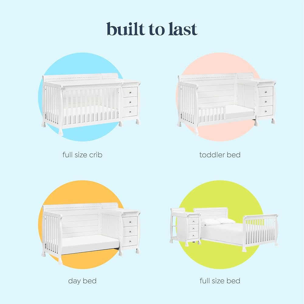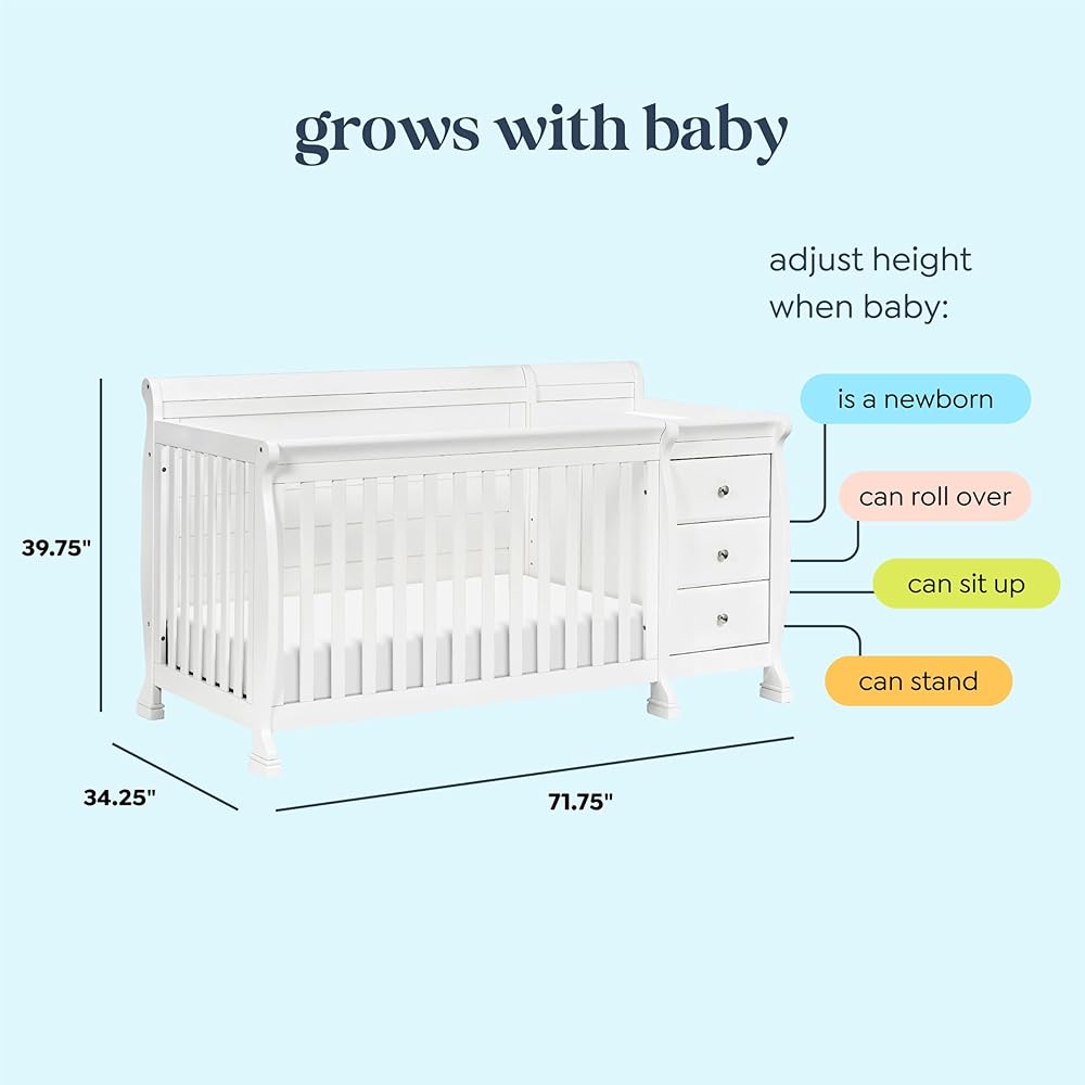 Functional and stylish, the Kalani 4-in-1 Crib and Changer offers an abundance of storage space. Featuring ample storage and classic design, this crib is sure to grow with your baby from nursery to kids room
