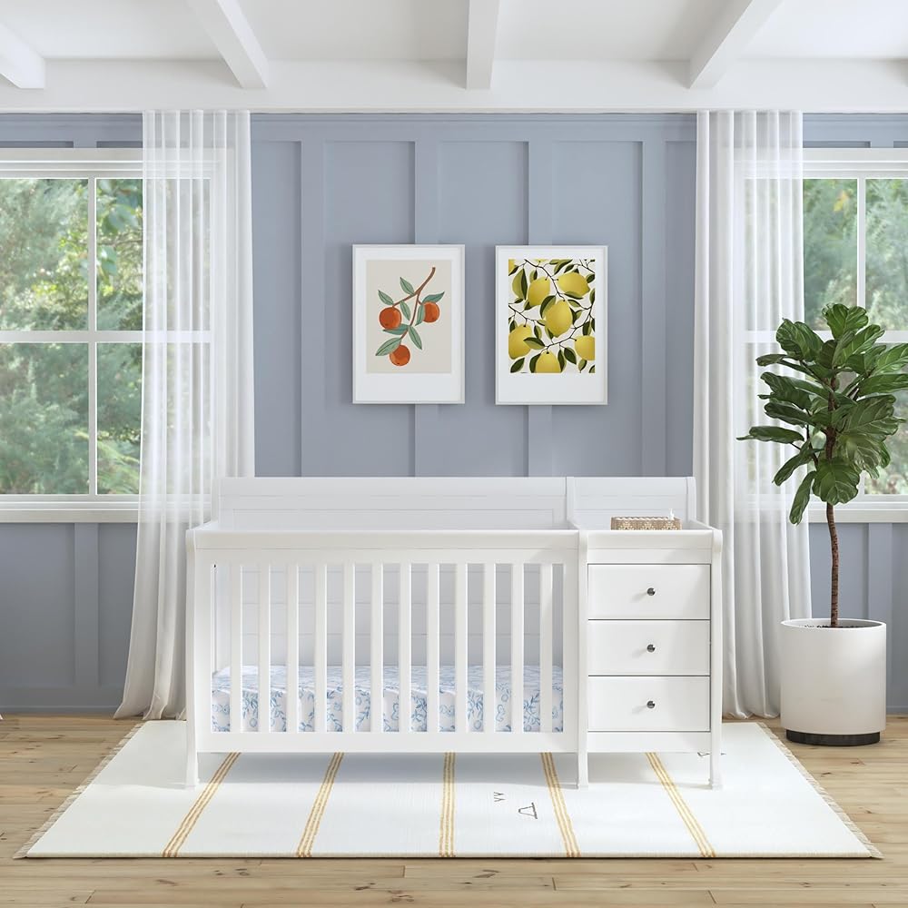 FUNCTIONAL DESIGN: Changing station sits atop compact drawer and spacious shelves that can hold all the adorable baby clothes, accessories, and more. We've built this with features like stronger drawer bottoms to make it sturdier and long-lasting