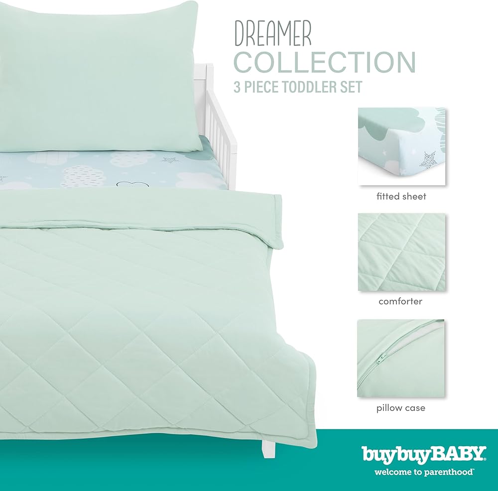 Evolur Dreamer 3 Piece Toddler Bedding Set, Super Soft and Breathable Toddler Bedding, Machine Washable, Includes Fitted Sheet, Comforter and Pillow Case