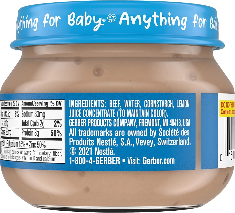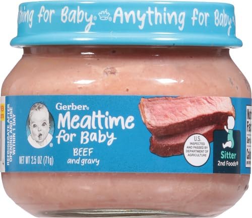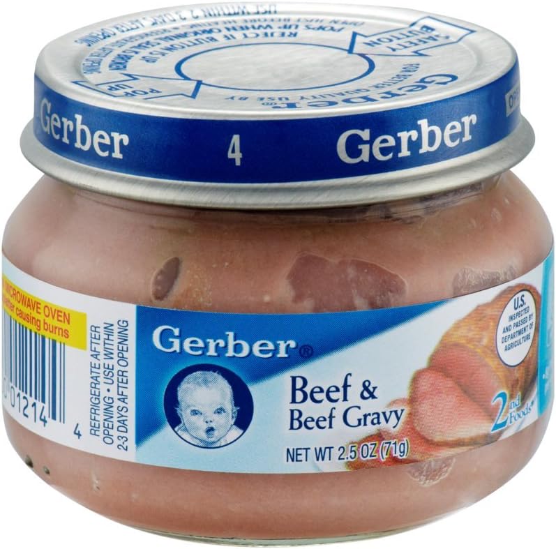 Gerber Stage 2 Baby Food, Beef and Gravy Jar, Baby Food Meat Puree, Baby Mealtime, Baby Puree Jars Glass