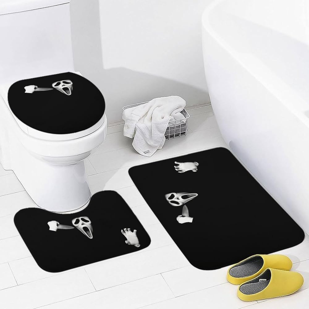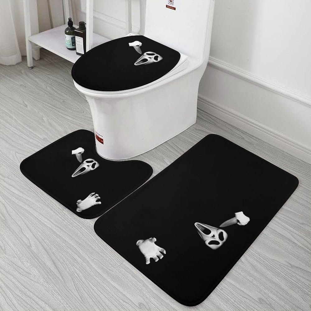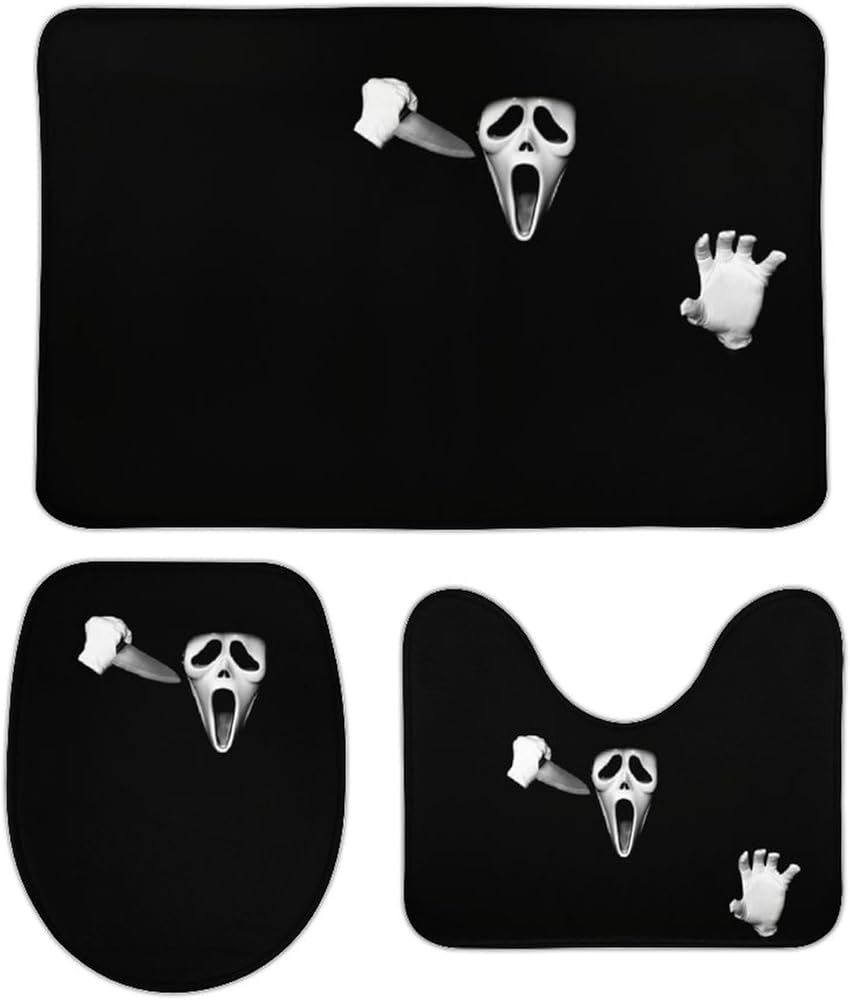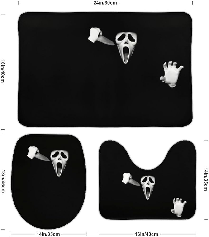 Scream Devil Black Bathroom Rugs Sets 3 Piece Coral Velvet Bath Rugs Ghost Mask Face Non-Slip Absorbent U-Shaped Shower Mat Decor Area Rug Sets Toilet Lid Cover Quick Dry 15.7"x23.6"…