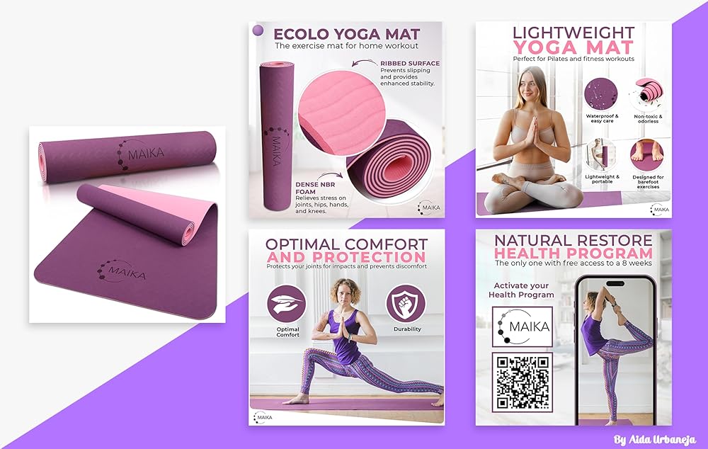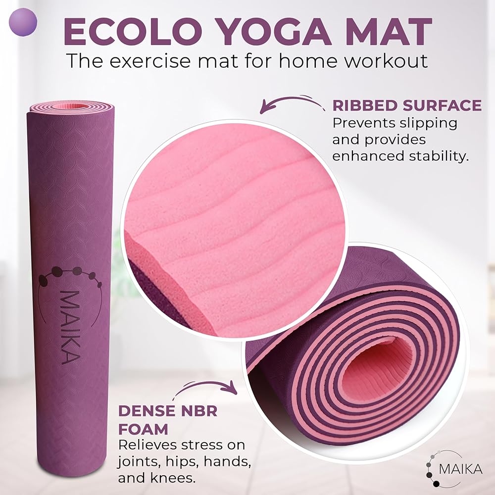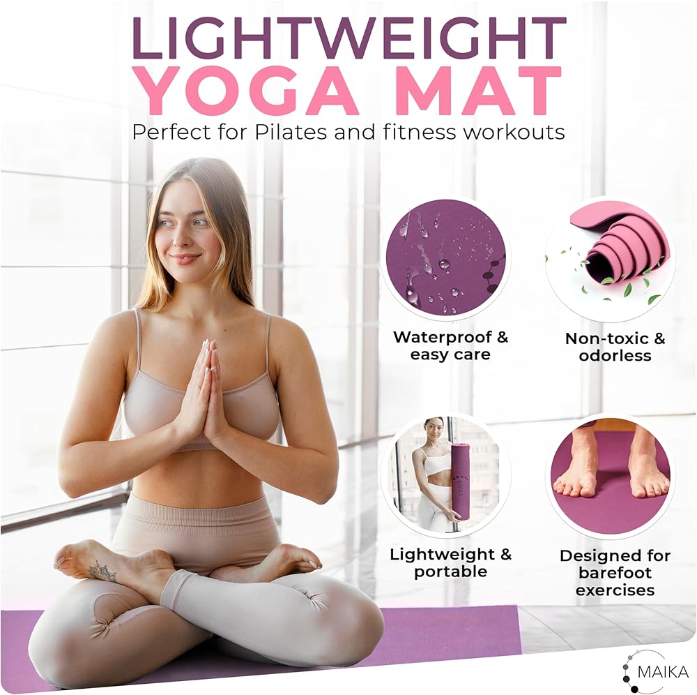 Maika Yoga Mat Non Slip, Pilates Fitness Mats, Eco Friendly, Anti-Tear 1/4" Thick Yoga Mats for Women, Exercise Mats for Home Workout, Includes health/Yoga program free access
