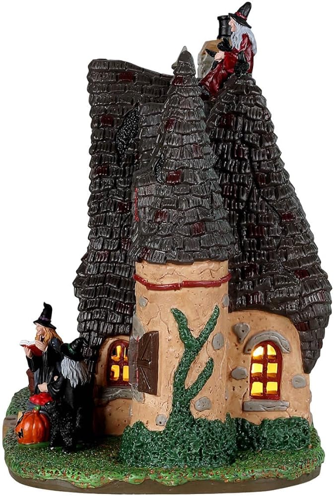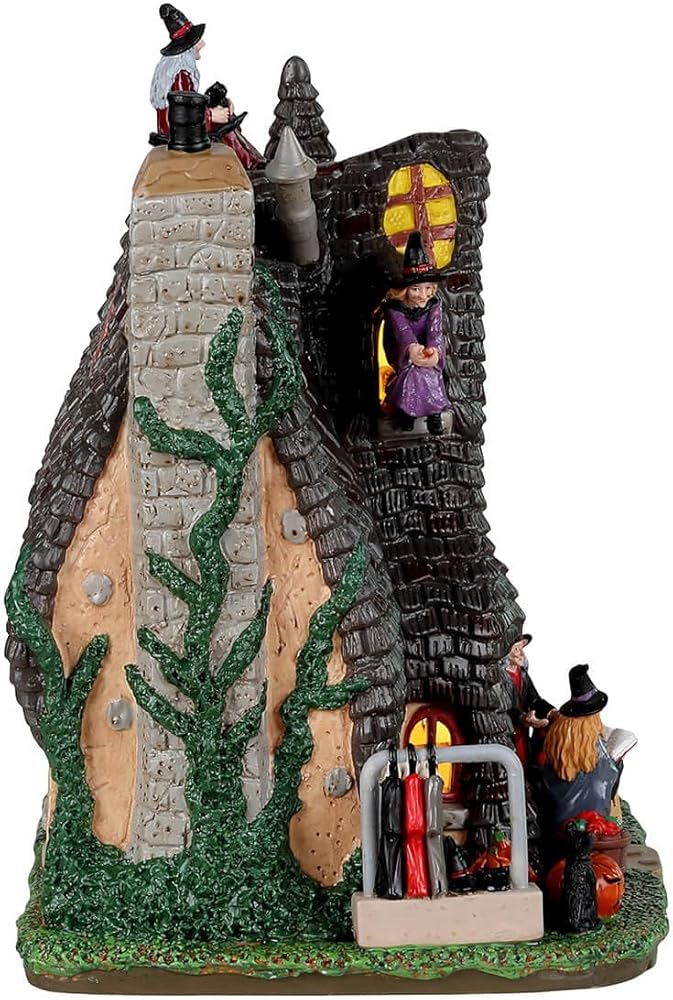 Number 13 Spooky Town is not unlucky for the witches who call this cozy cottage home. Complete with climbing creepers, shimmering candlelight and wooden shutters, the Witch's Cottage is almost too cute for the hags who cast their spells, cook up potions and sell poisoned apples. Watch them draw water from their well, carve pumpkins and look after the pet cat – black of course. Don't forget to the witch on the roof or the hag on her broom as you pass by – at a safe distance of course.