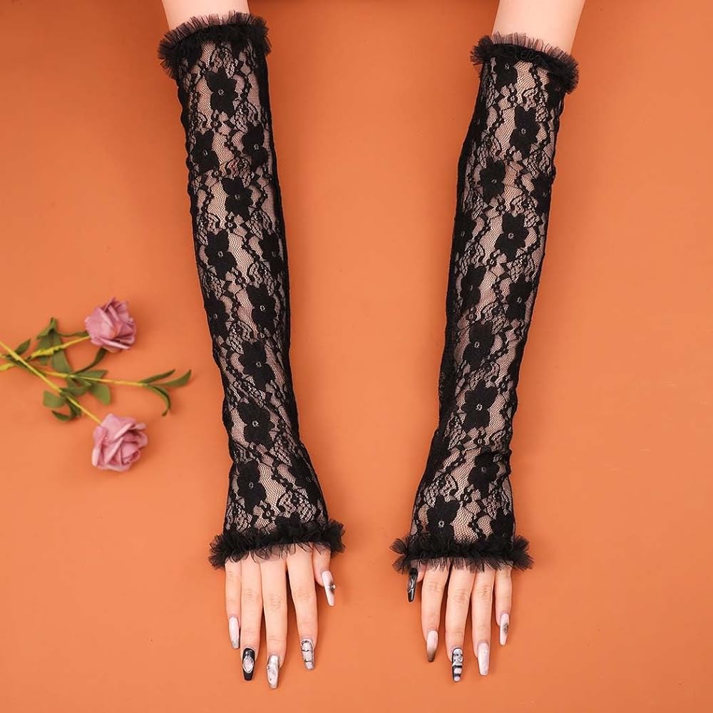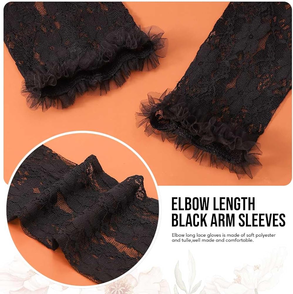 - Elbow length lace gloves can make you shine in wedding,halloween cosplay,evening party or any other special occasions.