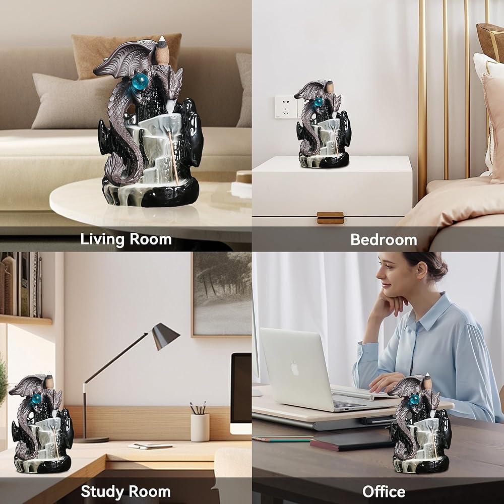 【Widely Used】Creative winged dragon backflow incense burner is exquisite in appearance and practical in function. Widely used in home, office, teahouse, meditation, yoga, and other places to create a pleasant atmosphere for you. It can also be used as a decorative craft figurine.