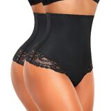 • 【Lace Tummy Control Thong Shapewear】This shaping thong is designed with high-stretch double-layer around the waist provide moderate compression, helps to tighten your lower abdomen. Mesh inner fabric on the tummy creates a freely-breathing area that could wear all day. High waisted shapewear feature also offer back support, help you outlines the slim waistline.