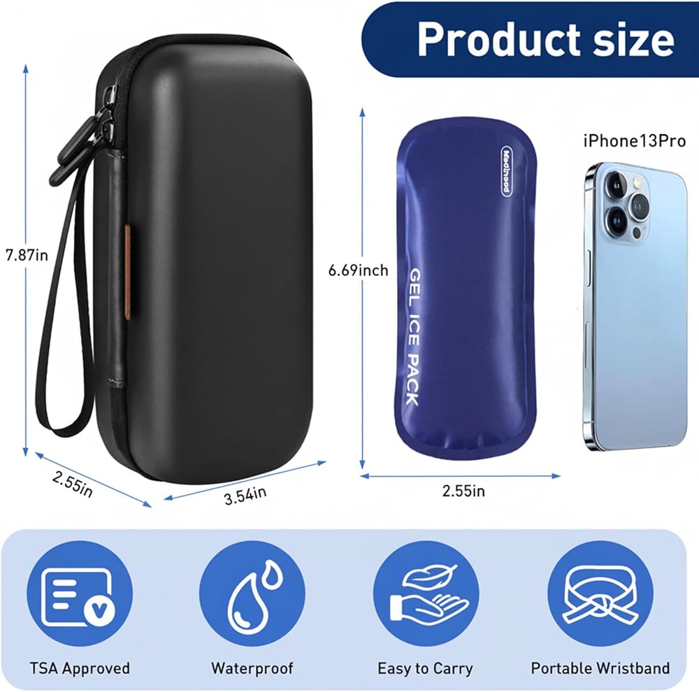 TEMPERATURE REAL-TIME MONITORING: The upgraded insulin cool travel case is waterproof, pressure-resistant and cold-keeping; The temperature display allows you to monitor the temperature without opening the travel medicine organizer, reminding you of the temperature of the insulin travel case, allowing users to travel with peace of mind