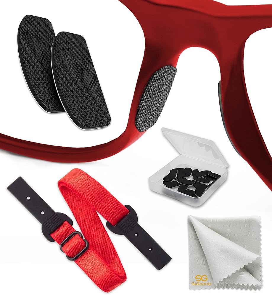 Eyeglass Nose Pads Anti Slip - Silicone Sunglass Pads for Glasses Anti Slip 1 mm x 7mm x 16mm - Eye Glasses Nose Bridge - Sunglasses Nose Guards for Glasses - 6 Pairs (Black Pads & Red Glasses Cord)
