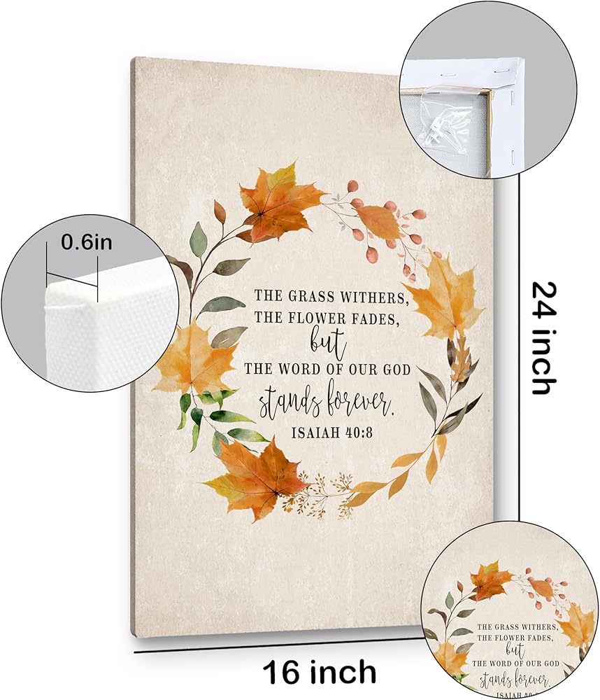 PHAMTE Christian Vintage Floral Wall Art Decor Canvas 11x14, Bible Verse Scripture Pictures Decorations, Religious Retro Flower Bouquet Framed Prints Artwork for Bedroom Living Room Church Decor
