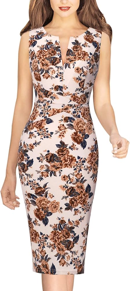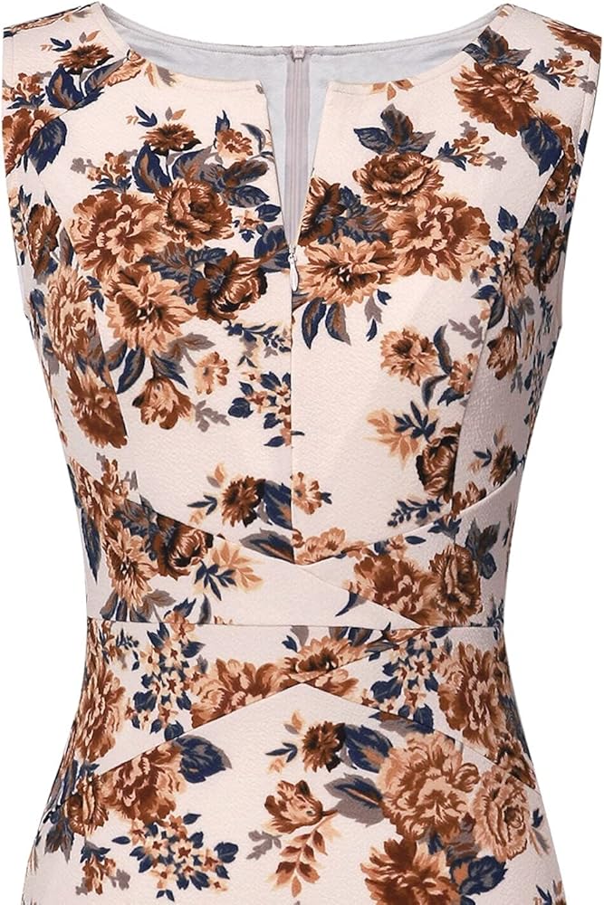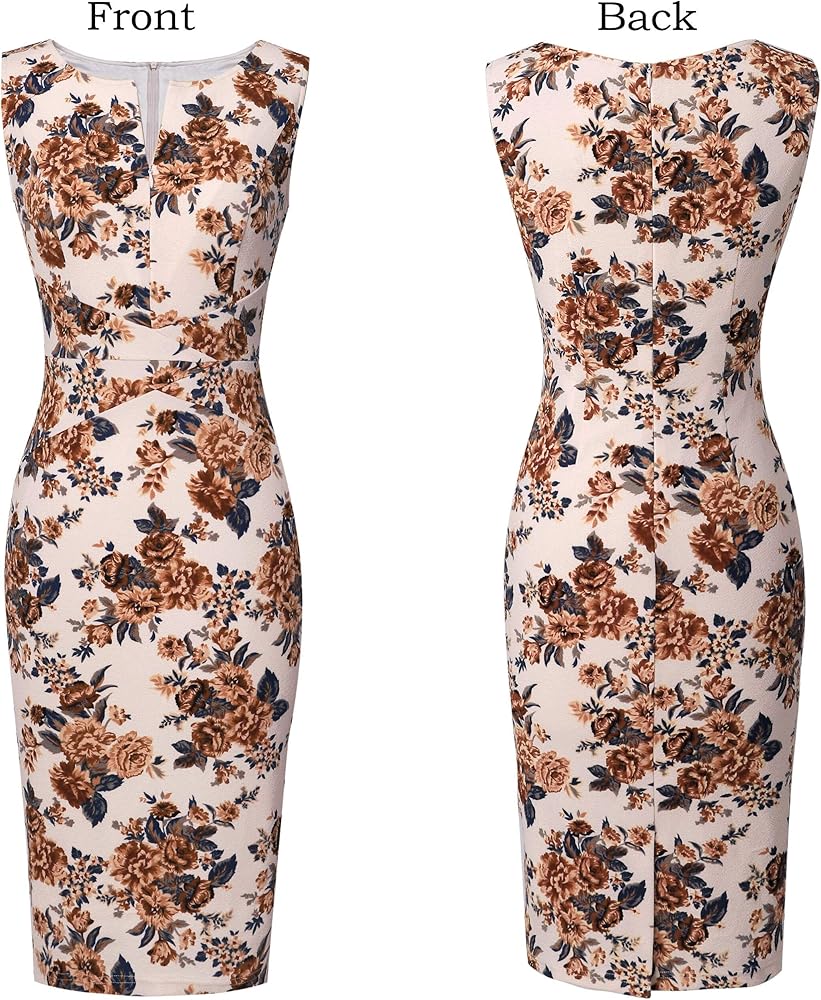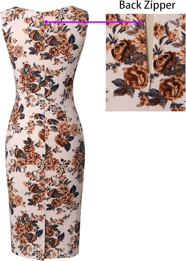 Style: Crew Neckline, Random Floral Print, Crisscross Waist Detail, Slim Fitting, Sheath Silhouette, A Concealed Back Zipper, Back Slit for easy walking. Front Adjustable Zipper [The front adjustable zipper allows you to zip or unzip, and it makes you more sexy or modest.]