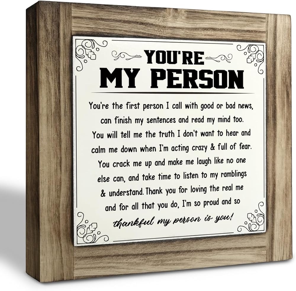 Thank You Gifts, You're My Person Poem, Box Wood Plaques Desk Décor, Anniversary Poem for Home Decor, Valentines Gift, Wife Gift, Husband Gift, Friendship Gift for Best Friend, Romantic Gift for Her
