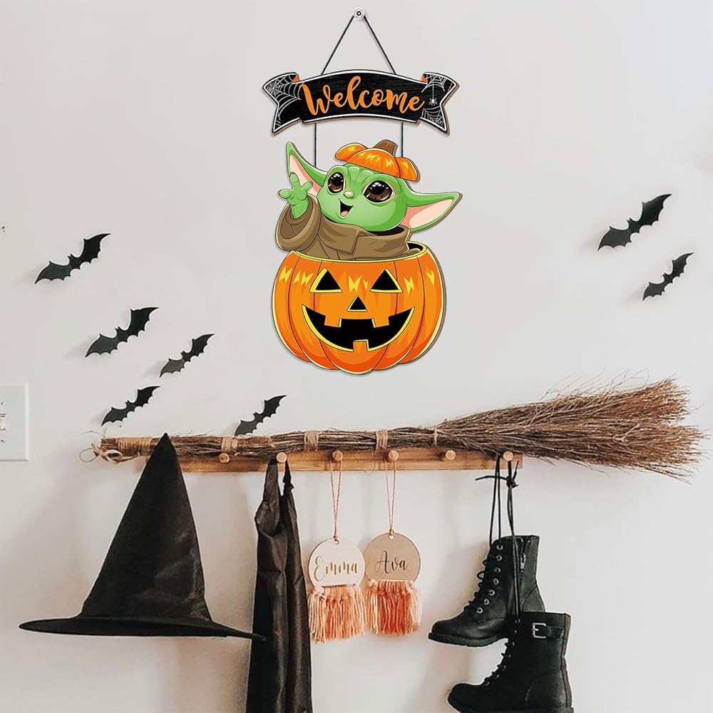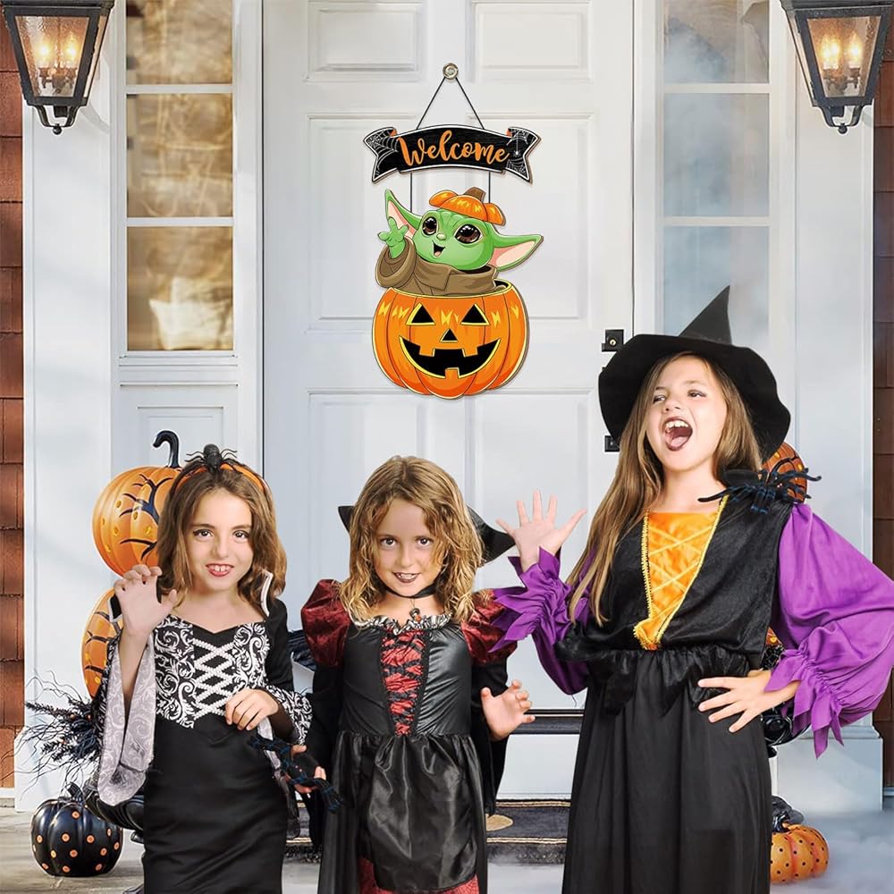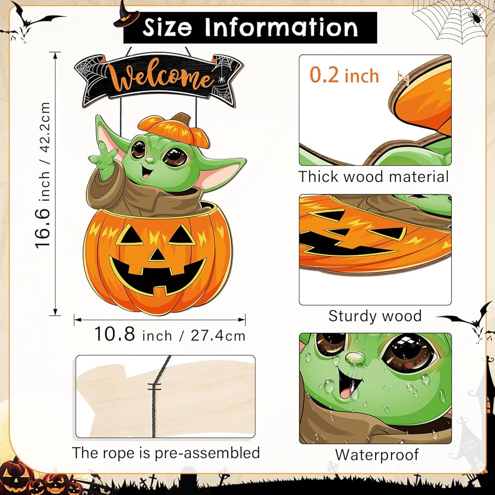 Unique Design: This cute door sign hanging on the outside gives your home a Halloween touch. Classic and unique, detailed and exquisite. Cute pumpkin design, features the text ' Welcome' for a warm greeting. The eye-catching Halloween decoration will attract and surprise your guests.