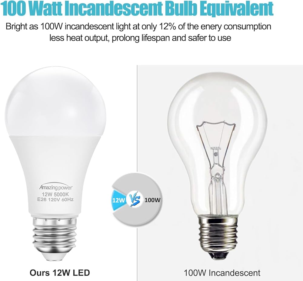 Good replacement for 100 watts e26 light bulbs by 12 watts E26 LED bulbs, it saves 88% on your electricity bill. NOTE: This LED bulb is not dimmable, please DO NOT use them with dimmer switch!