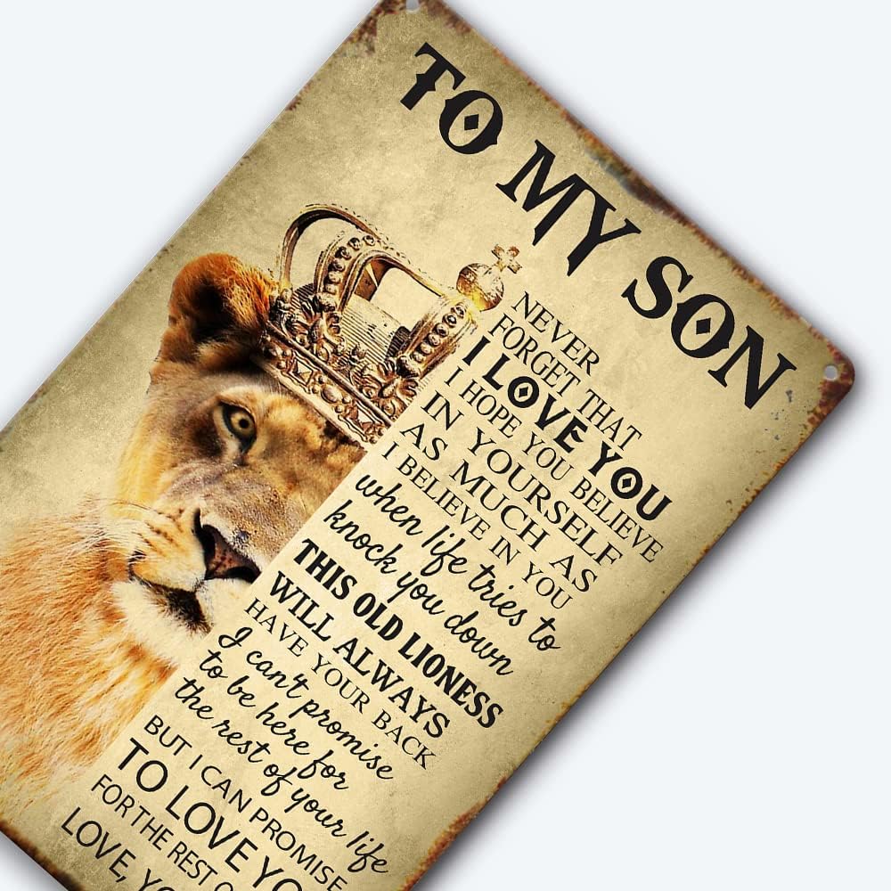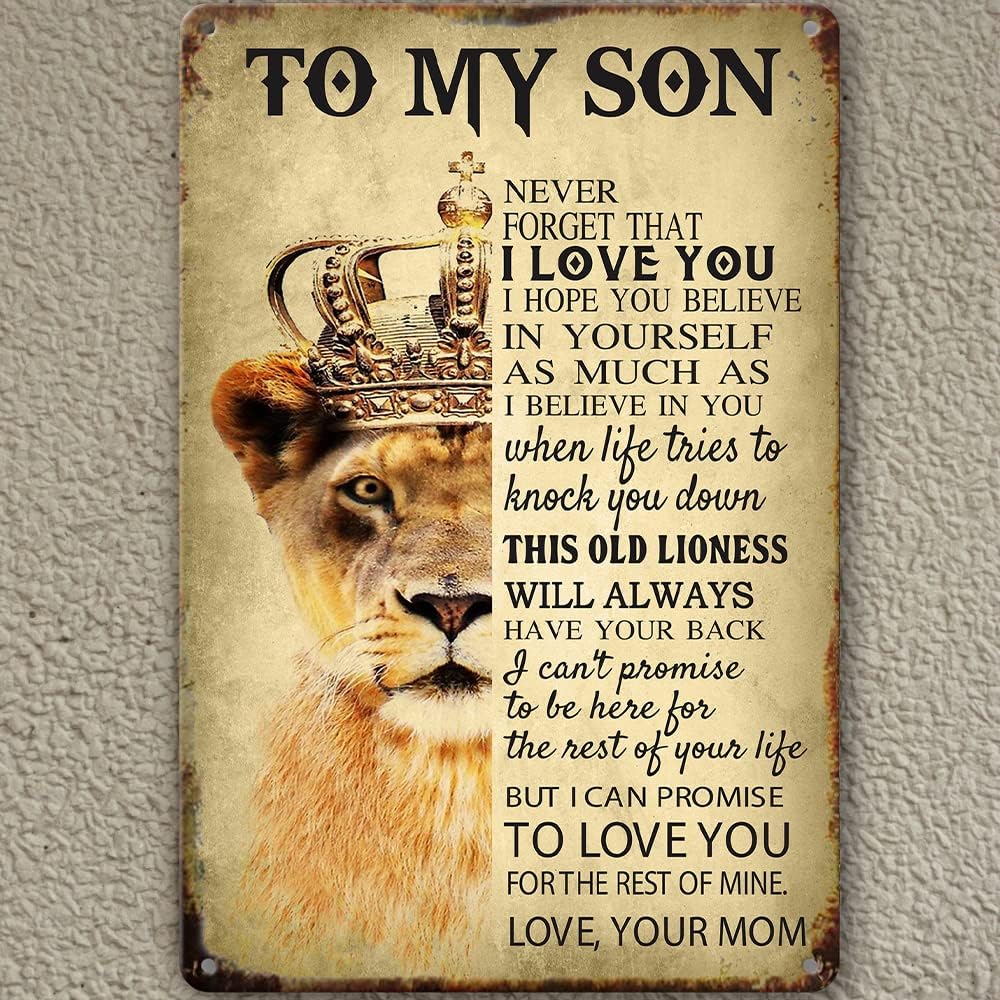 To My Son Gift Sign: Our Lion metal signs allow you to have your own unique style,Well designed with a vintage feel for indoor and outdoor use.