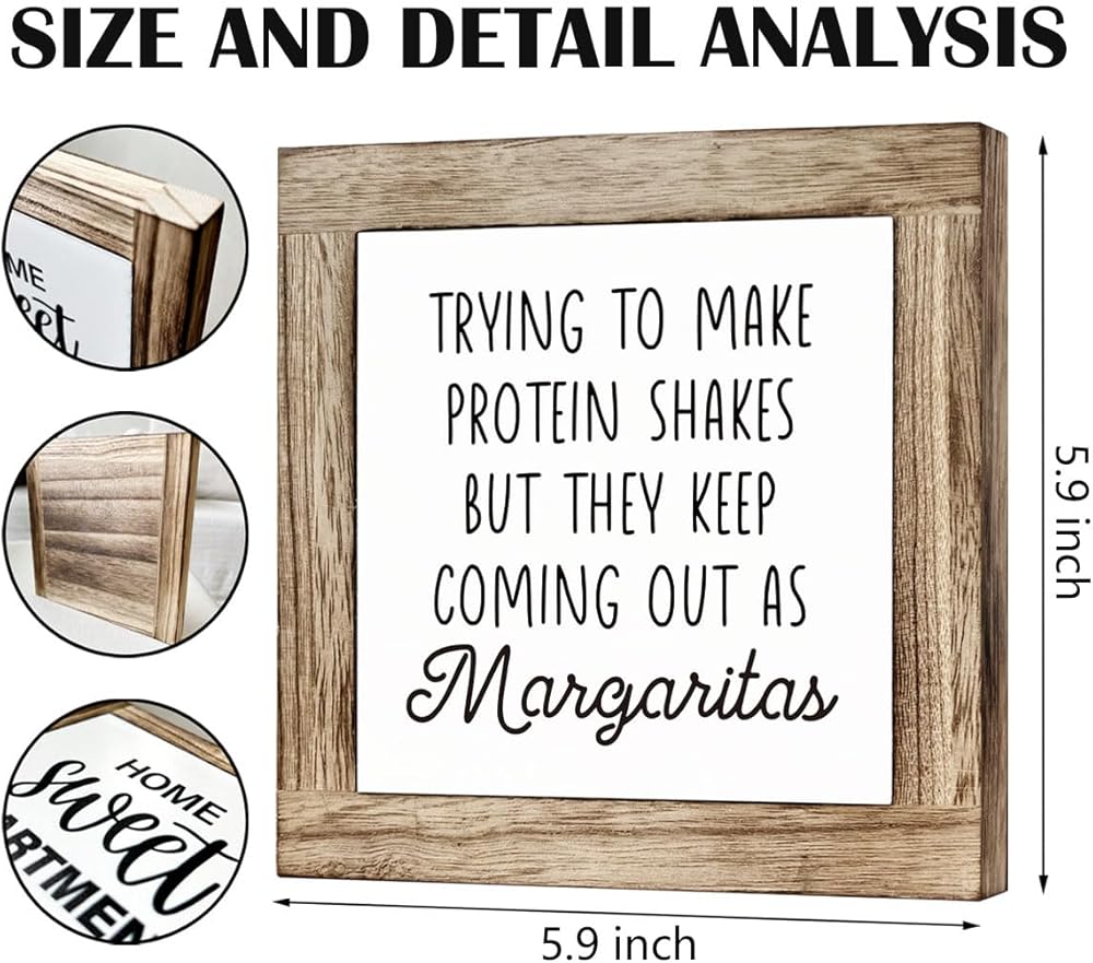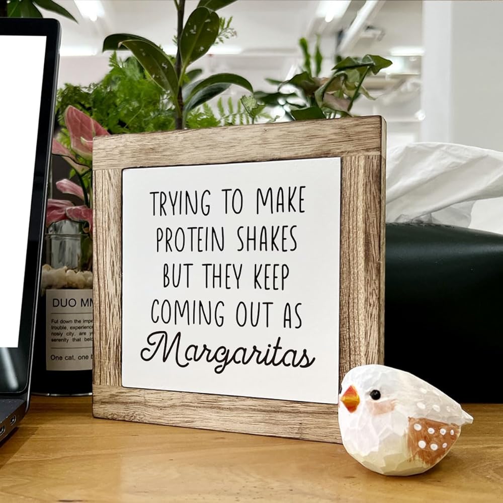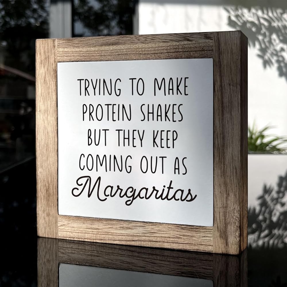 Kitchen Decor, Wooden Box Signs for Home Decor, Funny Kitchen Bar Decor, Cute Kitchen Wooden Block Sign Decor, Trying to Make Protein Shakes but They Keep Coming Out as Margaritas Sign, white