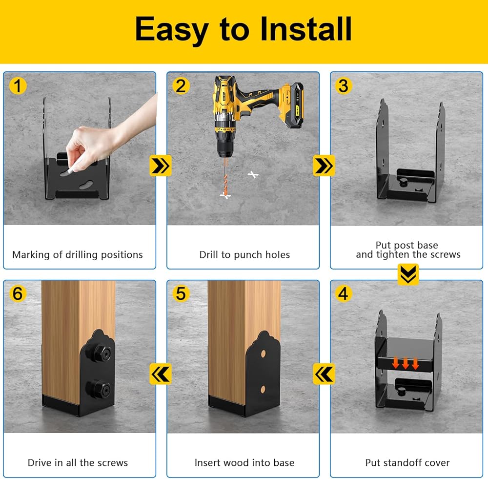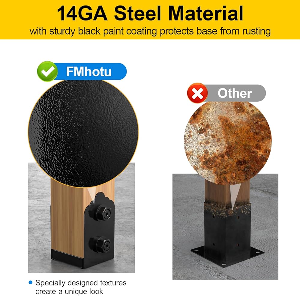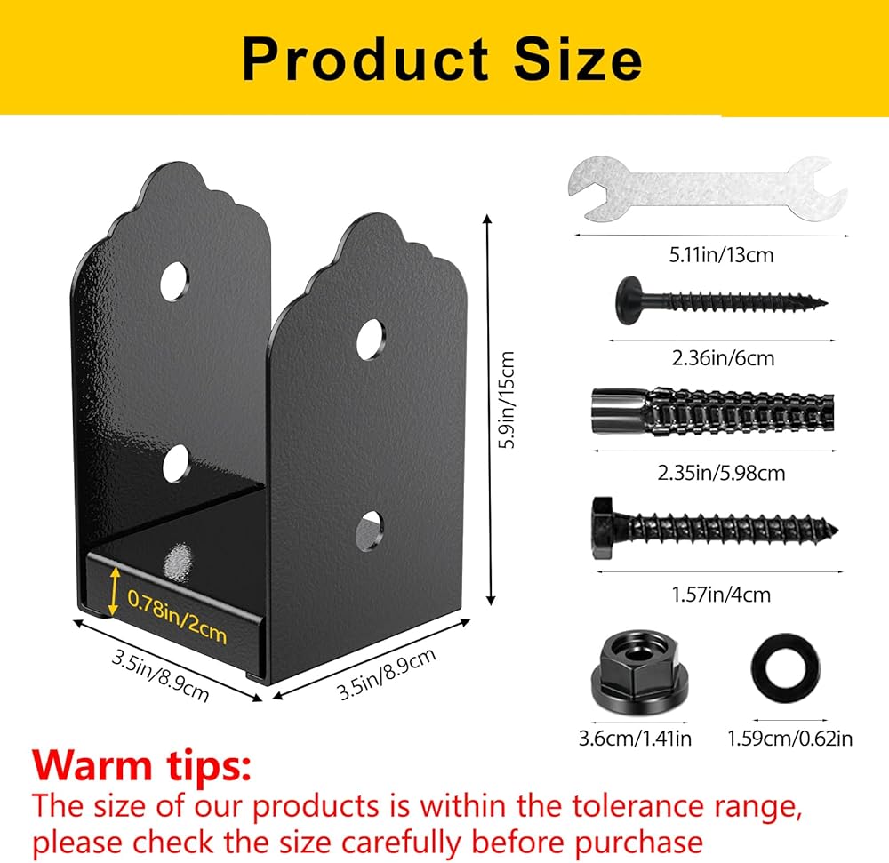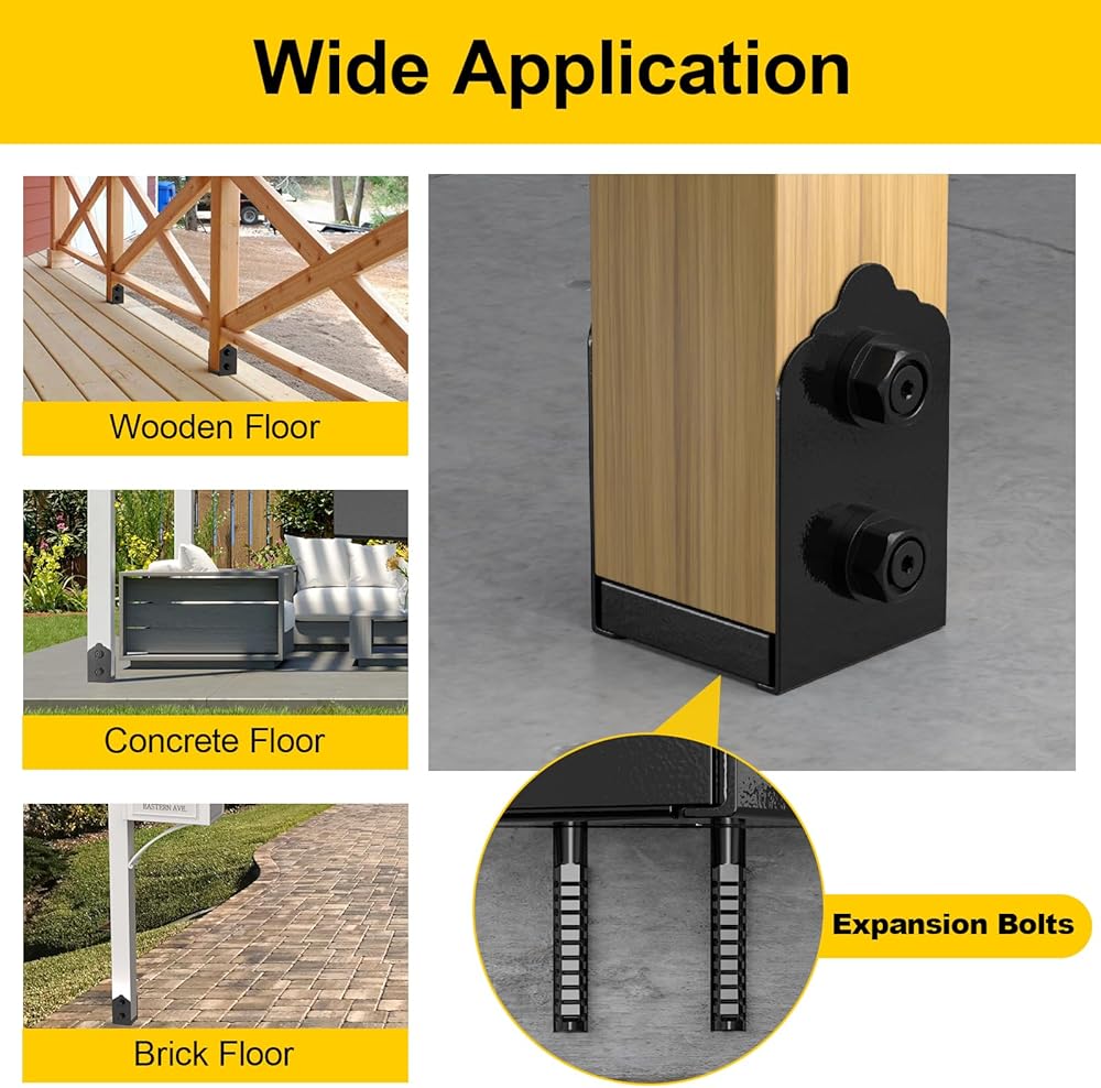 【Easy to Install】 After confirming the size of the wood post, just need to fix the nuts and screws. Our post bases are secured with carbon steel hex nuts for greater durability. Please confirm the size of the wooden post before you buy it
