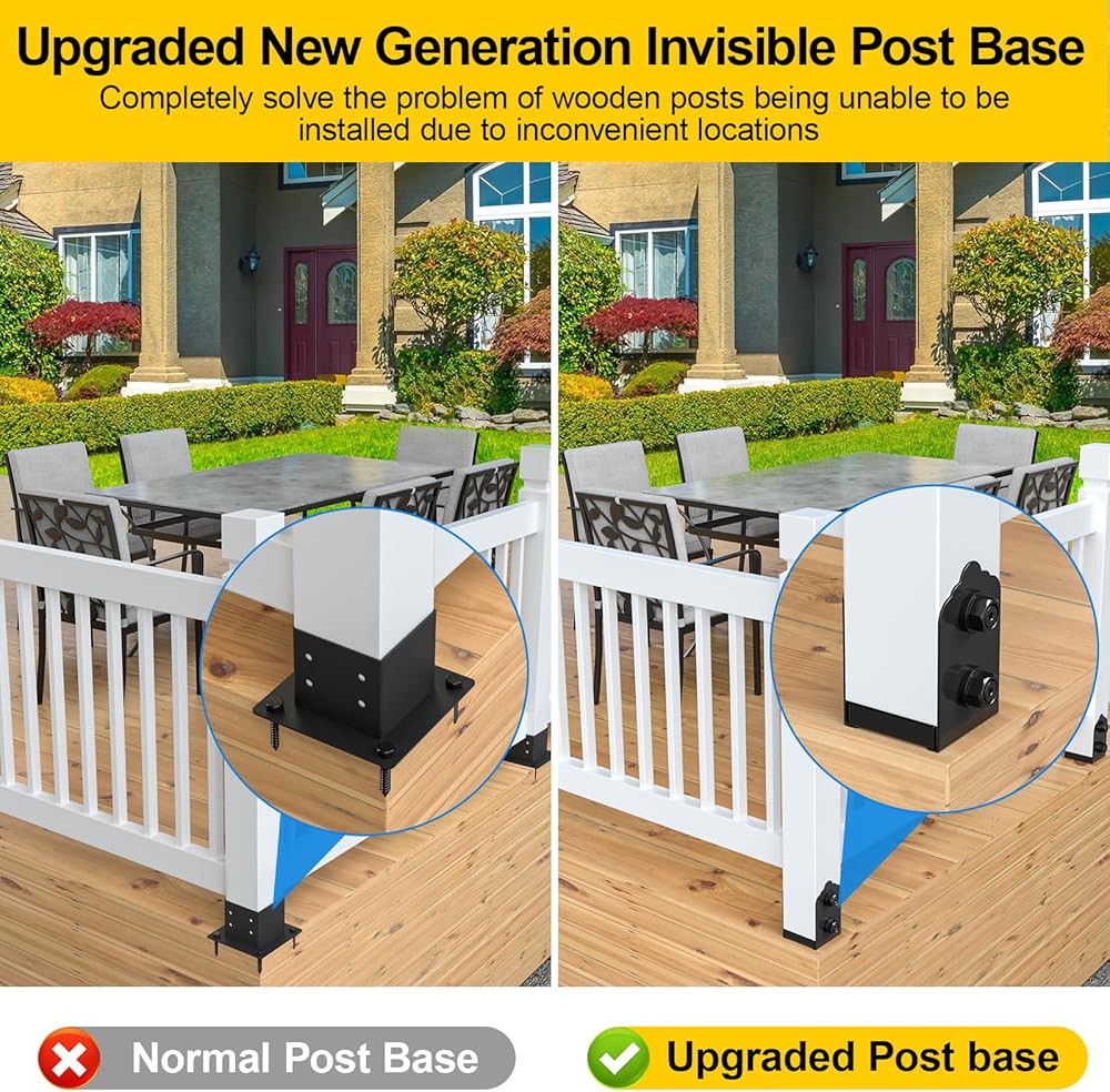 【SUITABLE FOR CORNERS】The upgraded base hides the screws inside the post, preventing the wood post from tilting while fitting in more positions