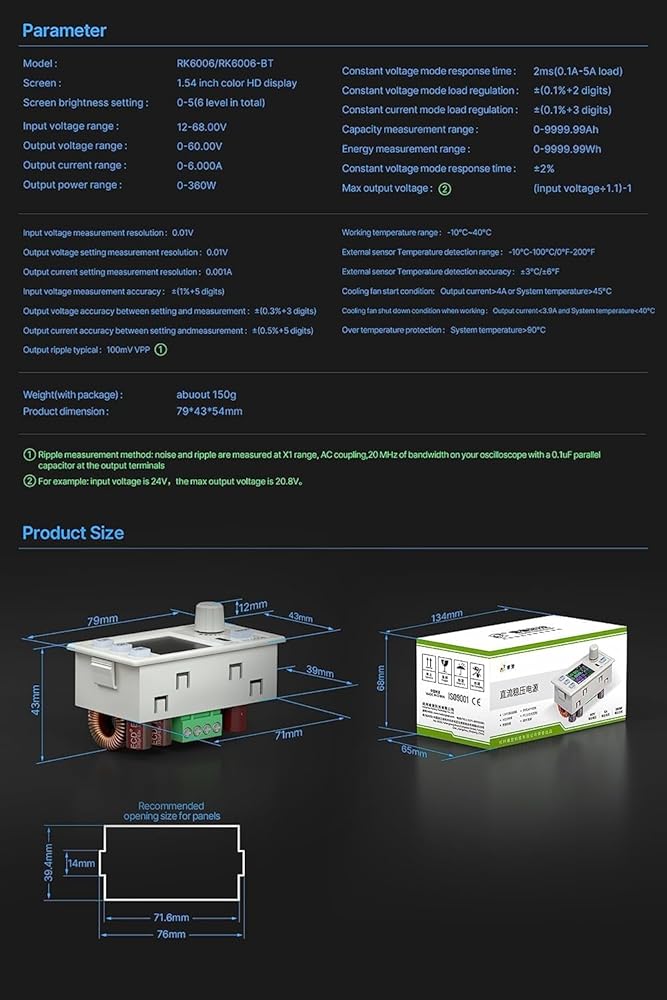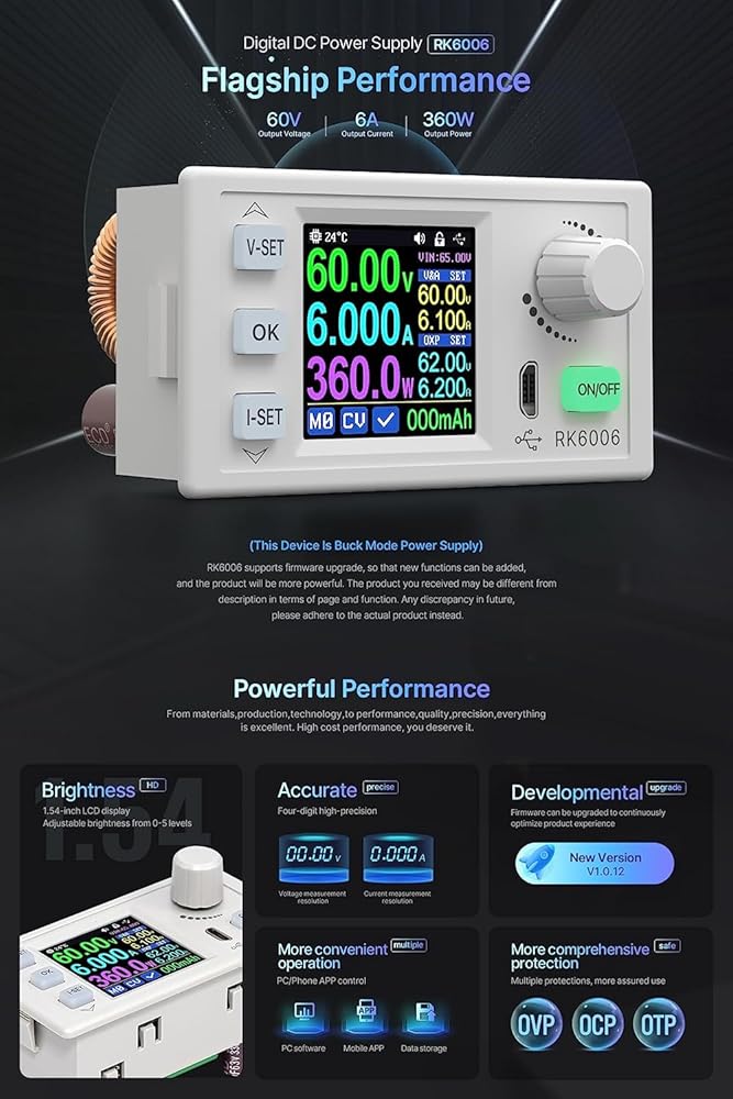 RK6006 60V 6A قابل للتعديل DC-DC محول فرق الجهد | عرض من 4 أرقام | مصدر طاقة المقعد للاتصالات وتنظيم الجهد