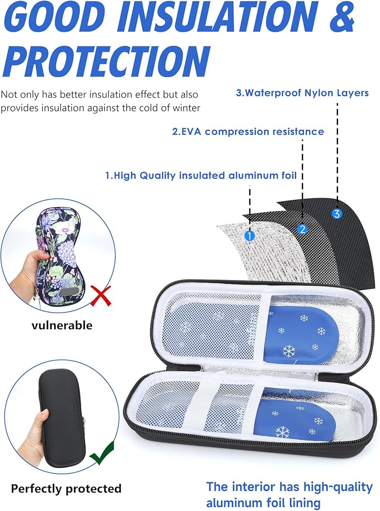 [Durable and Safe]Our medical cooler travel case is constructed from premium EVA and nylon materials, offering water resistance and shock absorption to effectively protect your insulin products while you're out and about.