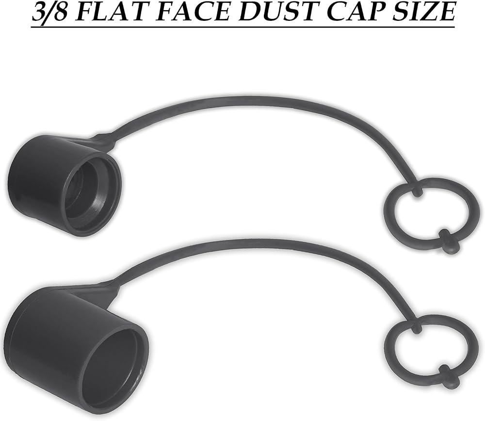 3/8 Skid Steer Bobcat Hydraulic Cap Flat Face Air Coupler Cover Male Female Dust Caps and Plug,Fits ISO 16028 Hydraulic Quick Disconnects with Retention Ring Keeps Cap Attached to Hose (BLACK)2 Set