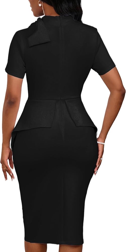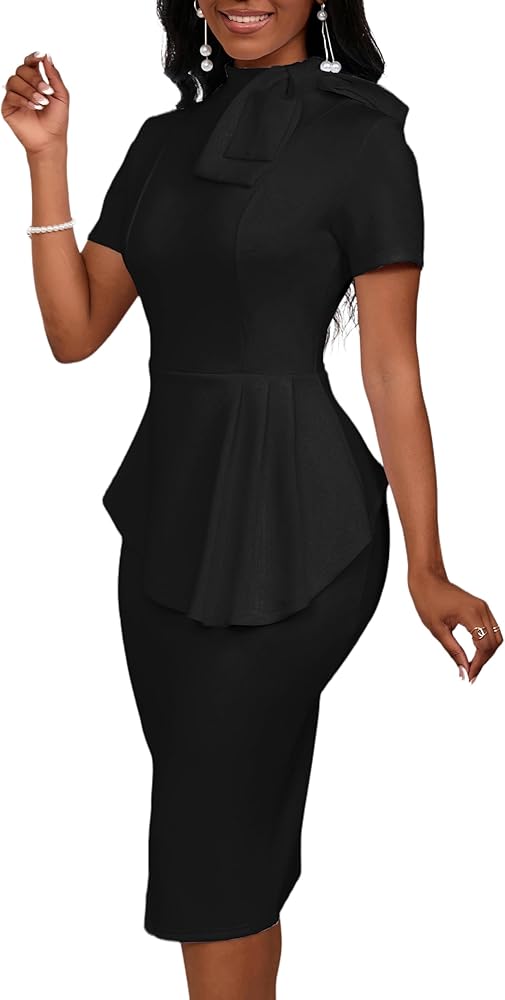 Bodycon Bow Club Ruffle Pencil Formal Cocktail Dress Elegant Chic and Semi Formal Style, Super Flattering, Classic Enough for Outside.