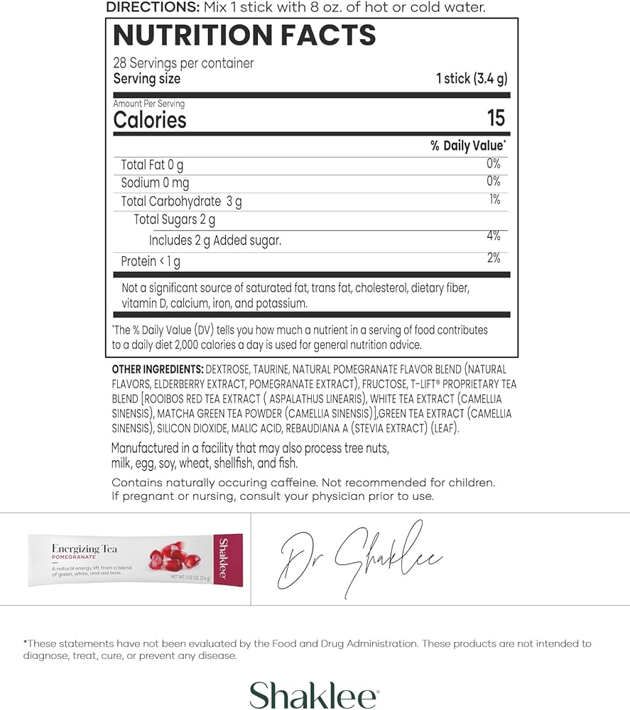 Shaklee Energizing Tea Pomegranate Flavor - Antioxidant-Rich Blend of Green, White, and Red Teas for Gentle Energy Lift - Energy Boost On-the-Go Packets - Hot or Cold - 28 Servings