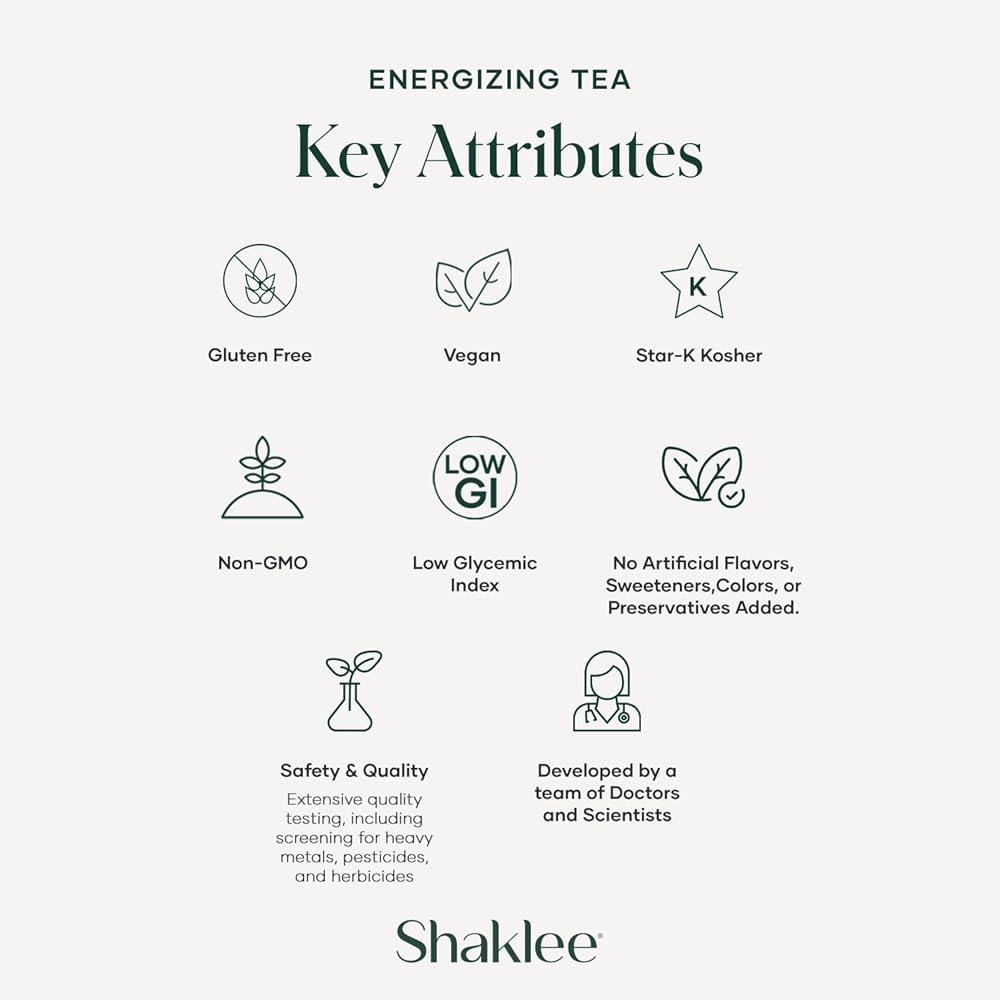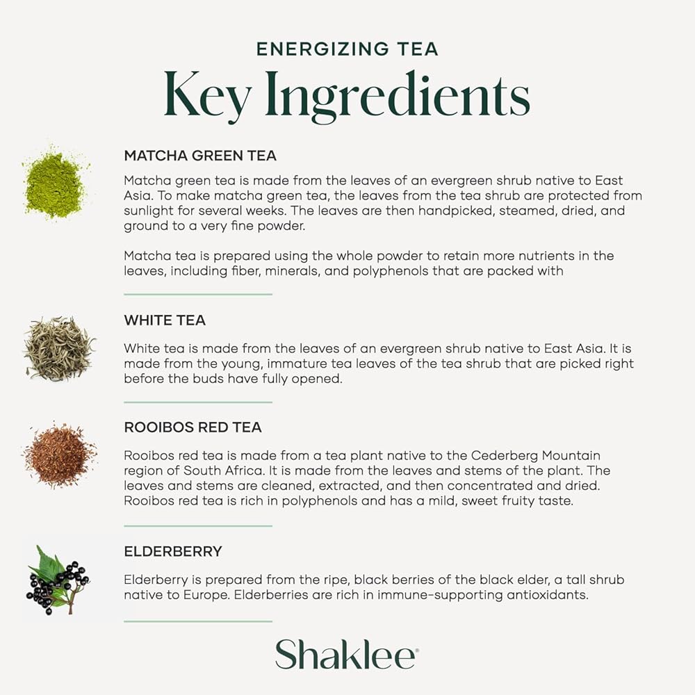 Ingredients for Enhanced Vitality: Crafted with a blend of green matcha, white, and red teas, Shaklee 180 Energizing Tea is free from artificial stimulants or additives. Offers a pure and revitalizing experience.