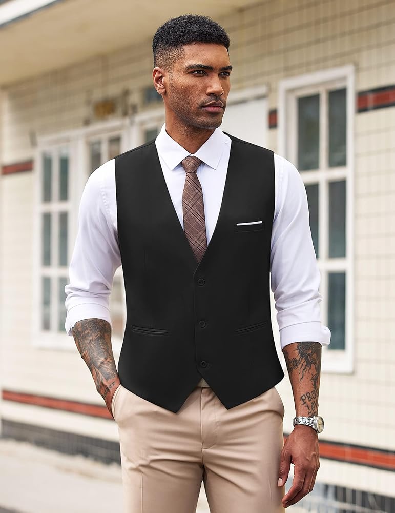 【Formal Or Daily Wear】Men's basic vests perfect for formal or casual occasions in all seasons like business, meeting, wedding, graduation, church and casual daily wear. You can wear it with a shirt, jacket, suit or tuxedo to make you handsome and gentleman.
