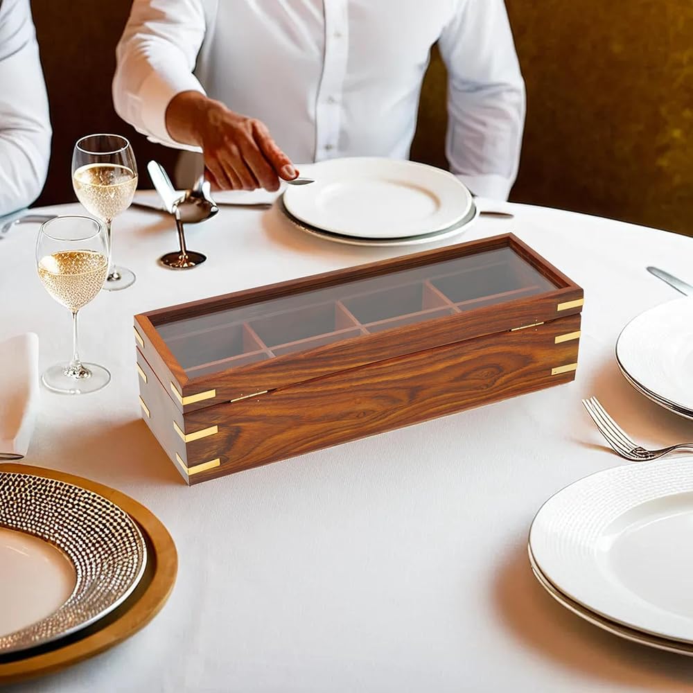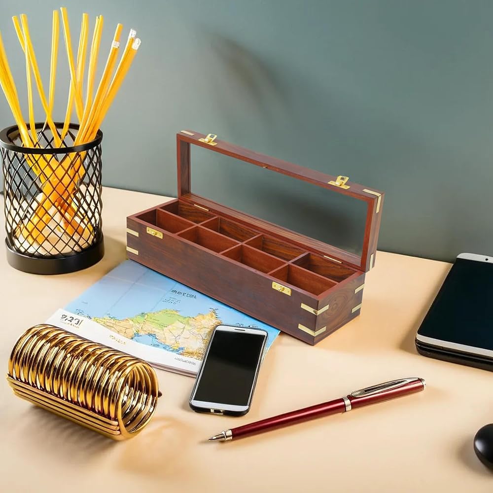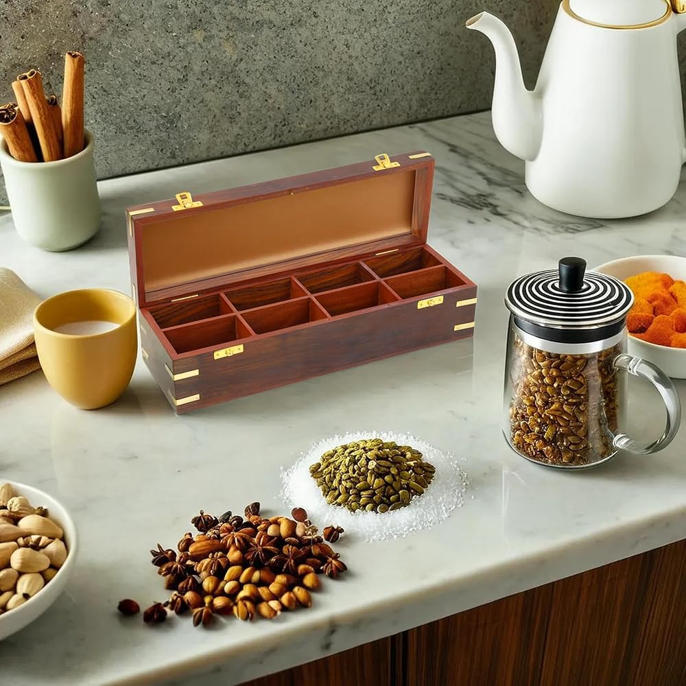 SKU Code - B0C6HW9MBW | Material - 100% Solid & Premium Grade Rosewood + Brass + Glass | Usage Includes - Ideal For Storing Collectibles, Trinkets & Trivial Items | Can Also Be Used As A Spice / Masala Box & You Can Put Into It 8 Different Spices Together At One Place | It Is Also Suitable For Dry Solid Eatable Items Like Sugar, Coffee, Tea Leaves, Dry Fruits Etc. | Applications Are Endless & Limitless Depending Upon The End User's Creativity & Application.