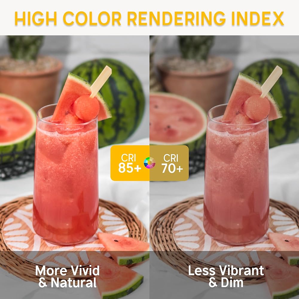 • Daylight White 5000K: It mimics the daylight of midday to create the perfect ambience for your house, office, restaurant, hotel and bookstore. UP to 85 CRI, these light bulbs allow you to see the color they supposed to be seen