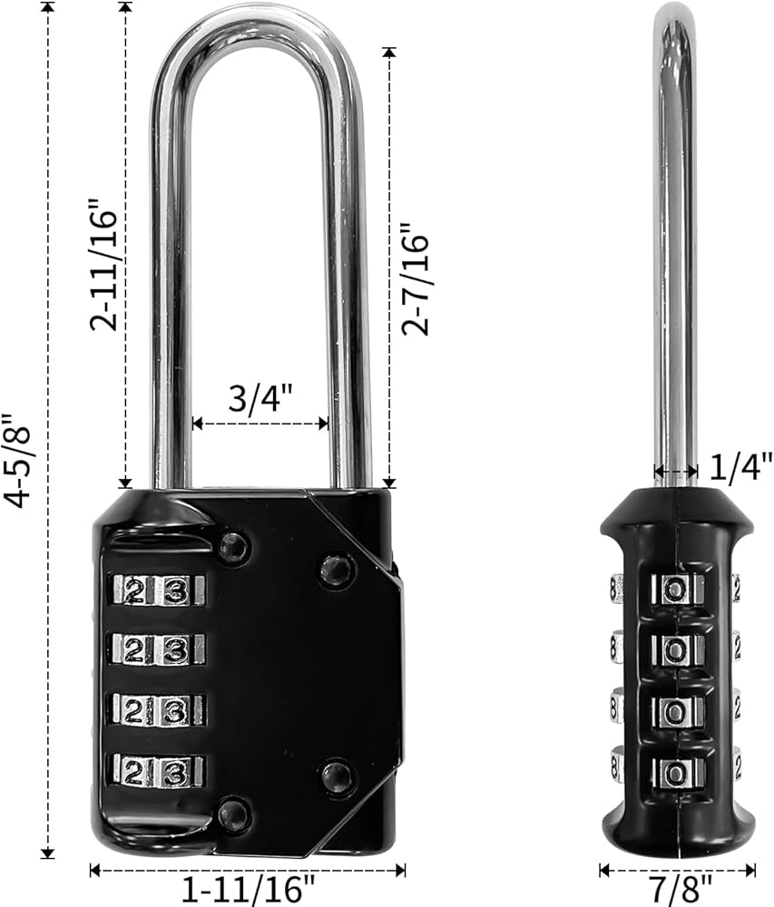 [Versatile & Portable] 1-11/16" wide lock body, 1/4" diameter shackle with 2-11/16" length, compact size makes it easy to carry wherever you go. Extended shackle length for various applications such as gym lockers and toolboxes etc.