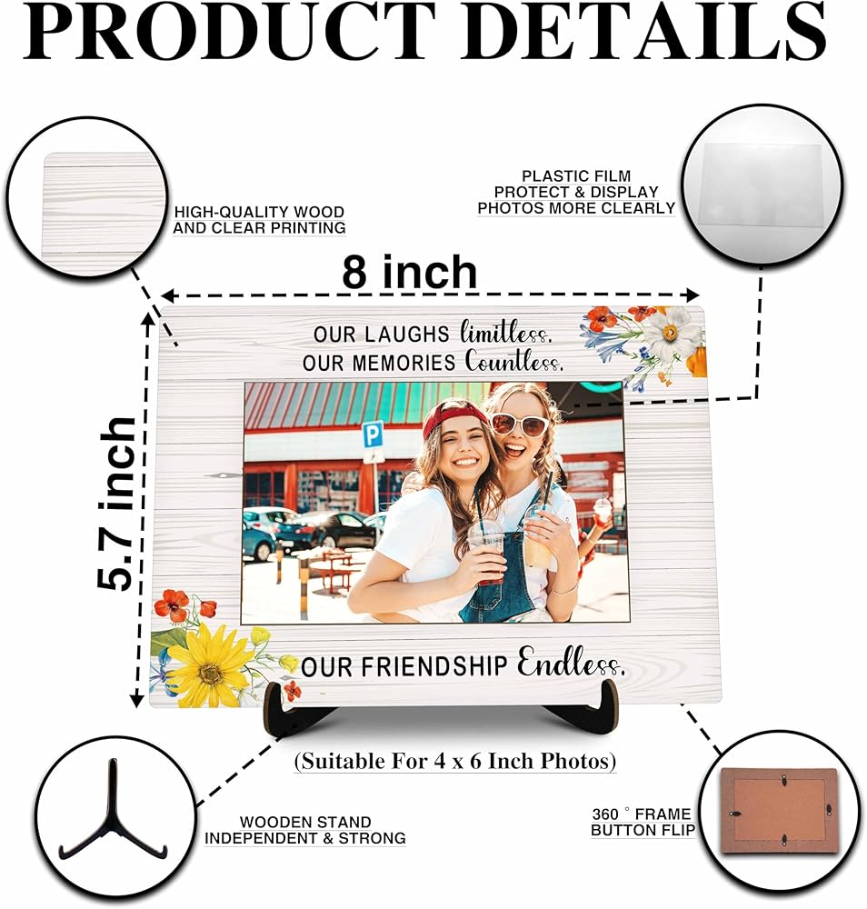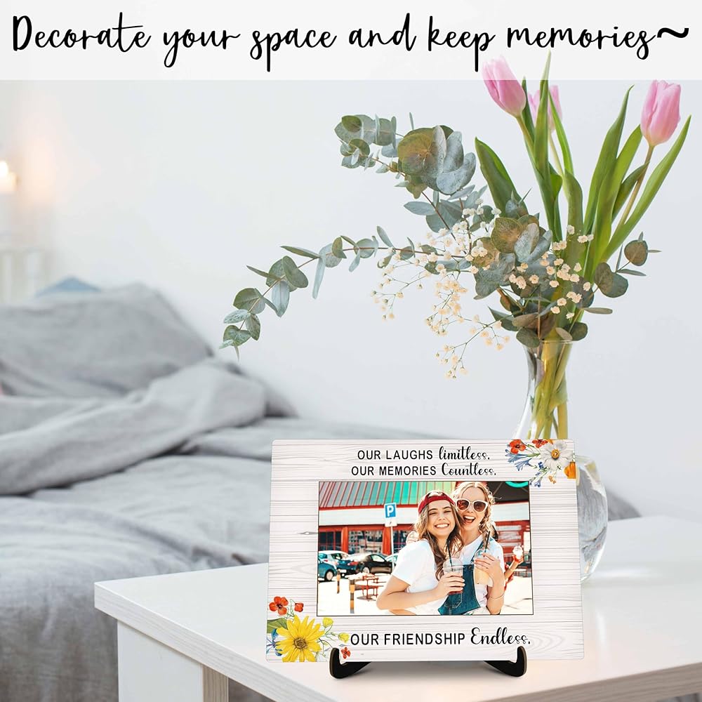 Best Friends Pictures Frame, Friendship Endless Photo Frame with Stand, Friendship Gifts For Women Friends BFF, Farmhouse Home Living Room Bedroom Office Decoration -a43