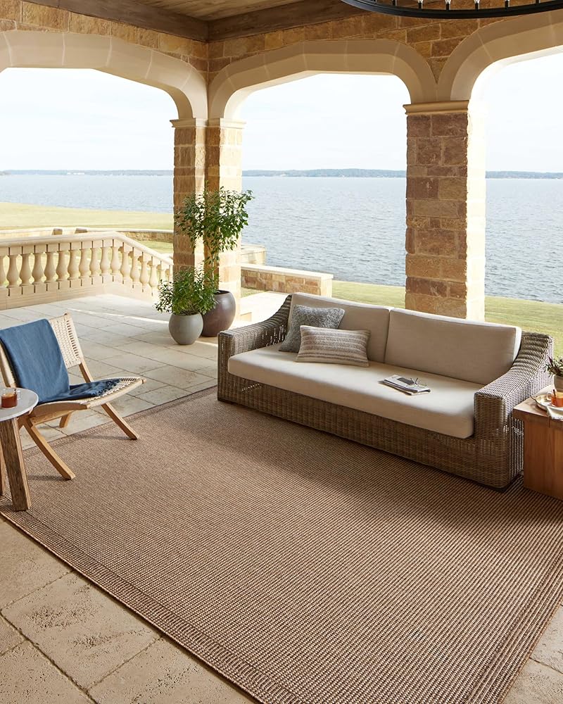 The Merrick Collection is an indoor/outdoor area rug with a clean-lined design in a warm rust palette. Made of 100% polypropylene, Merrick is durable enough for rainstorms on the patio or high-traffic mudrooms. To clean, simply hose it off and lay flat to dry outdoors. Made in Egypt.