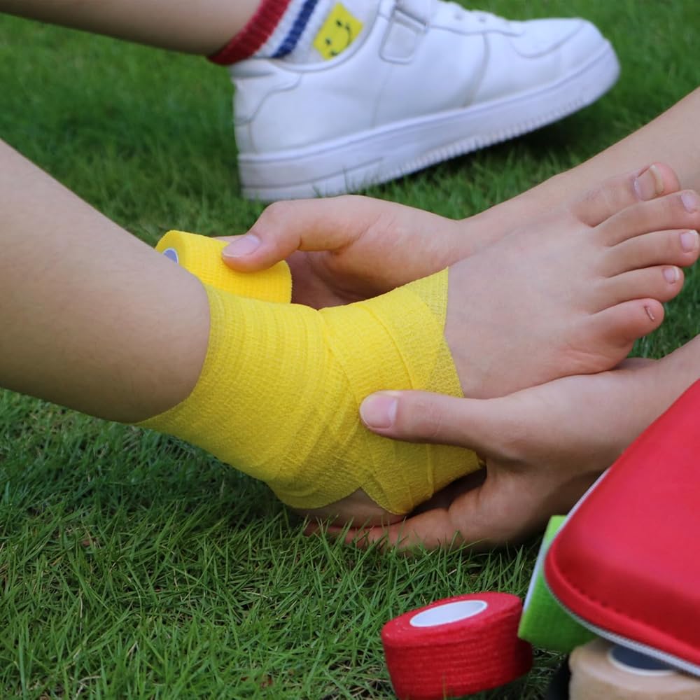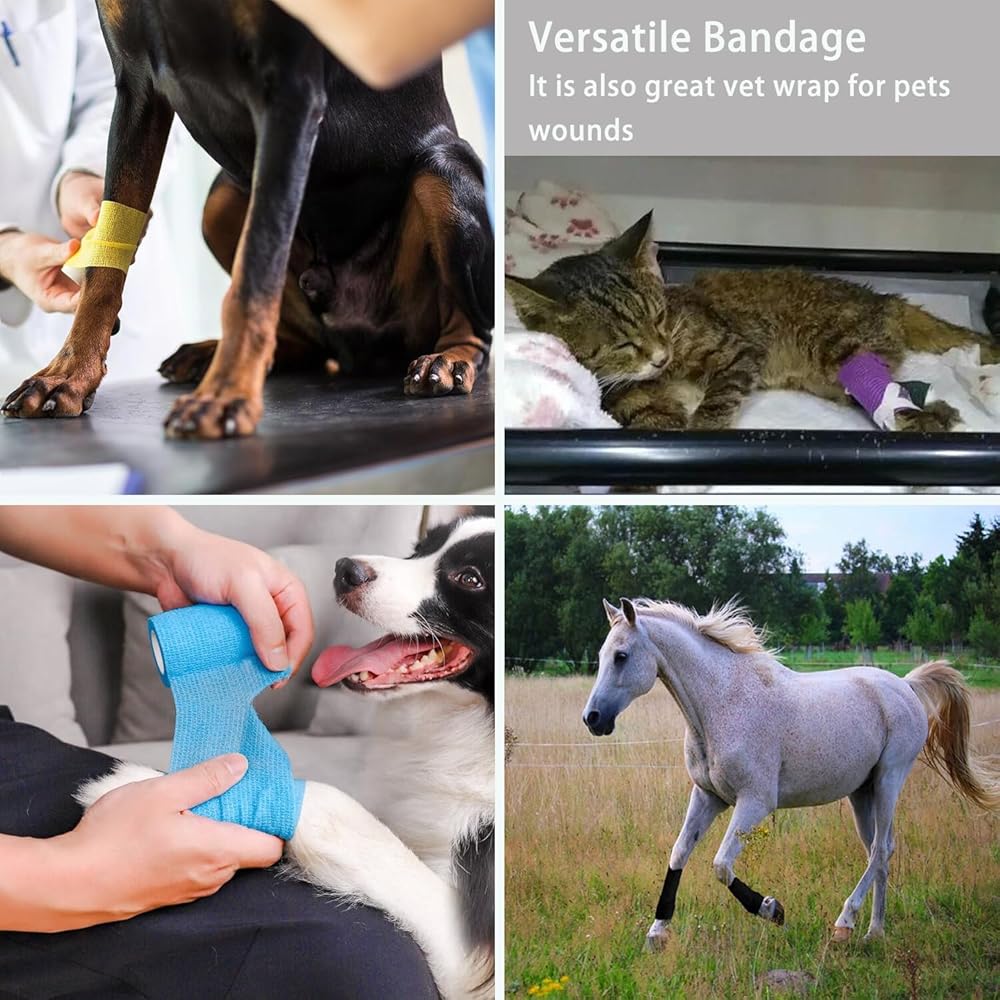Versatile Bandage--- From providing support during sports seasons or practices as first aid gauze for minor injuries. Or to hold the dressing in place when needed. It's also great vet wrap for pets wounds.