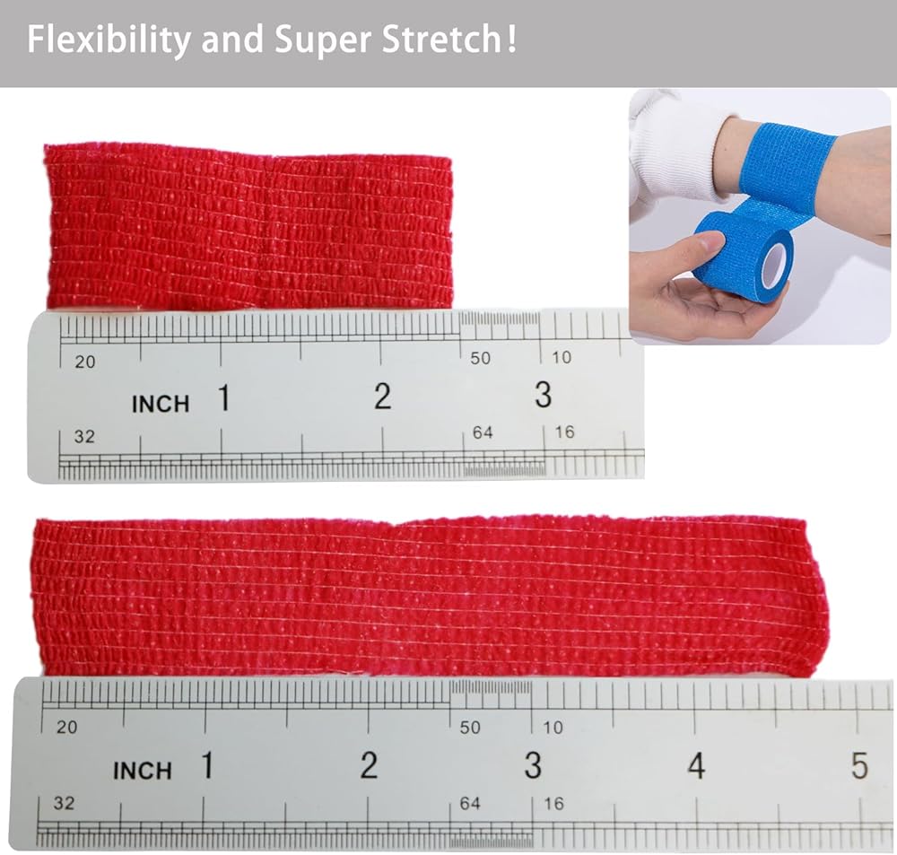 Flexibility and Super Stretch---The wraps stretch nicely. You can tear it without any tools, which makes it perfect for wrapping around joints and other contoured parts of the body and help from overtight around your arm/leg.
