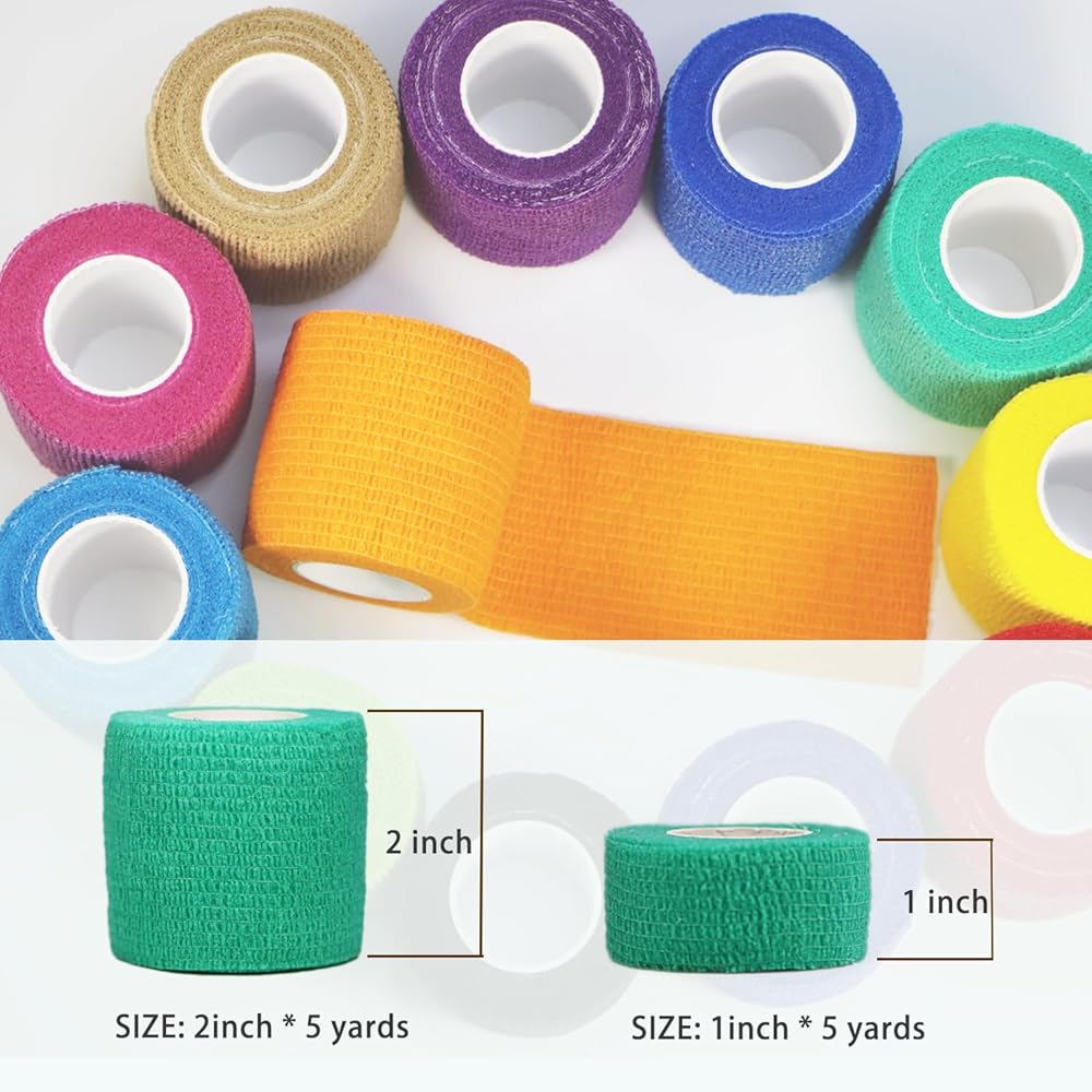 Self Adhesive Bandage Wrap, 2" x 5 Yards Cohesive Elastic Athletic Tape, Vet Wrap, Wrist Wrap, Self Sticking Bandages Wrap for First Aid Sports (12 Count Colorful (Pack of 1), 2 inch * 5 Yards)