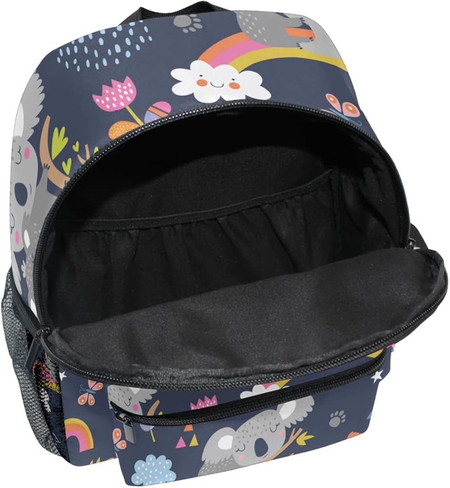 PROPER CAPACITY & MULTI STORAGE SPACE & POCKETS -- 1 x roomy main pocket, 1 x inner pocket, 1 x inner zipper small pocket, 1 x front zipper pocket, 2 x side pockets. This cute backpack for girls/boys can effortless store preschool student's or toddler personal items.