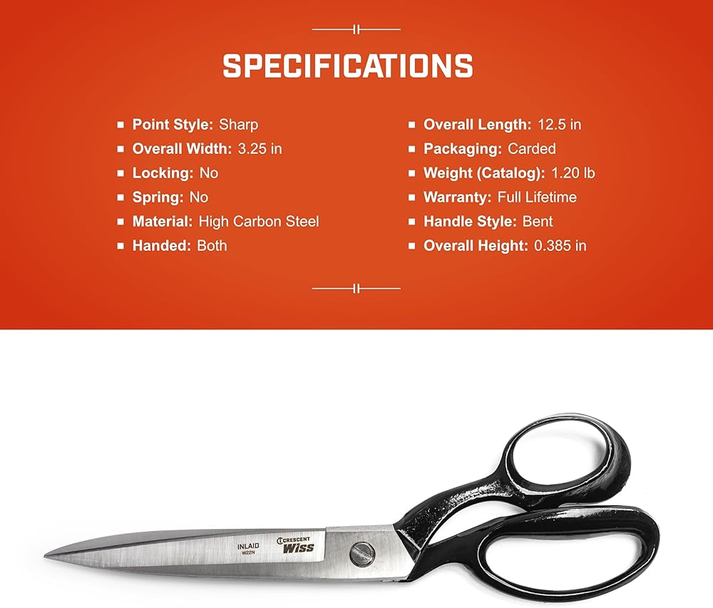 The Crescent Wiss Bent Handle Industrial Shear has thick, heavy duty blades for cutting multiple layers or tough materials and is ideal for cutting upholstery, carpet, and drapery. The precision ground blades allow for sharper cutting edges and a longer blade life. The handle rings comfortably fit users' hands, and the SET-EASY pivot adjustment easily and securely adjusts to fit your grip. The hot dropped-forged nickel-plated blades provide long-lasting durability.