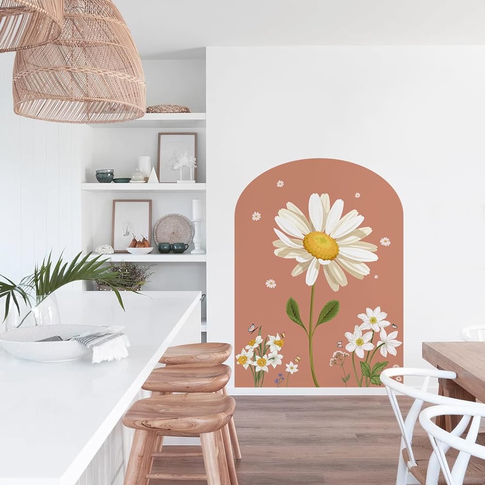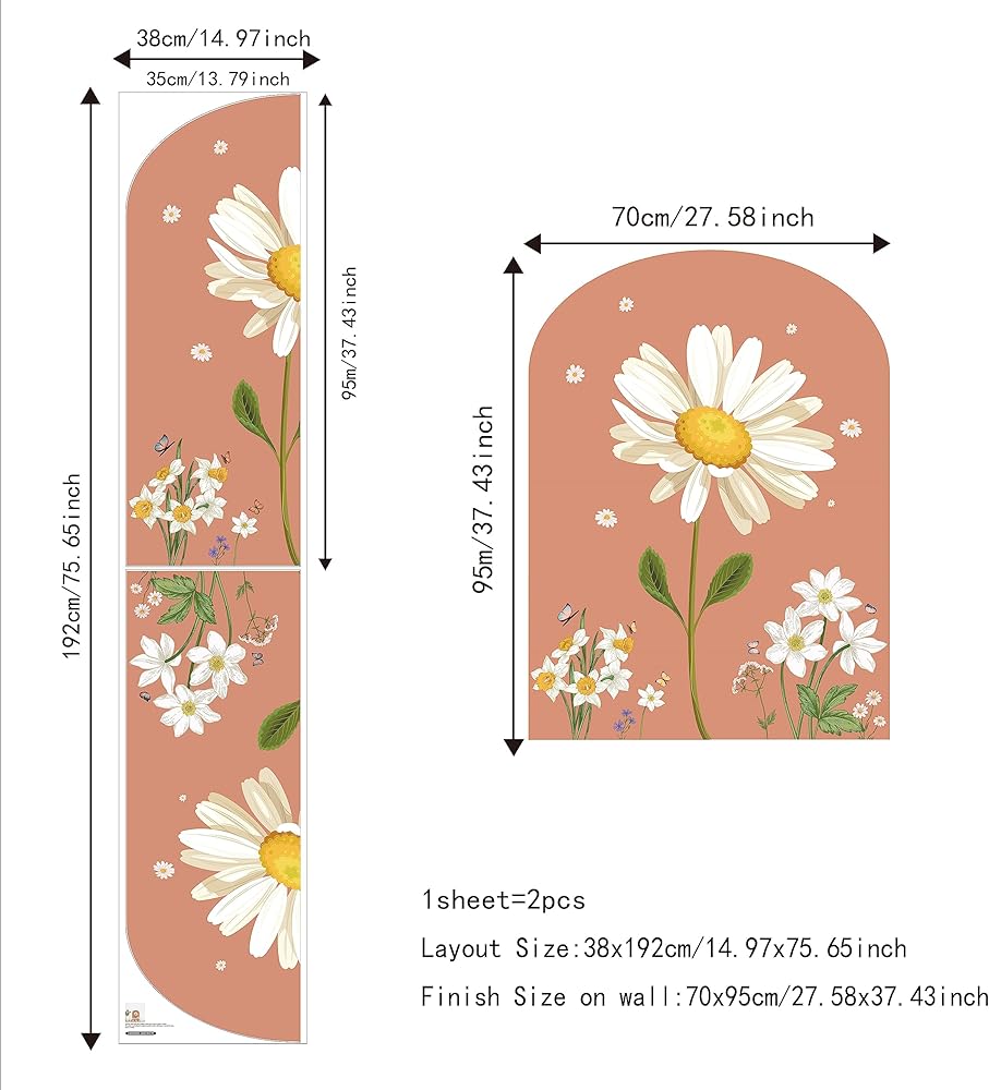 Floral arch wall decal finish size: 27.58x37.43inch/70x95cm. Recommend NOT to use it on textured walls. The rougher the wall is the more air will be trapped in, will result in poorer adhesion