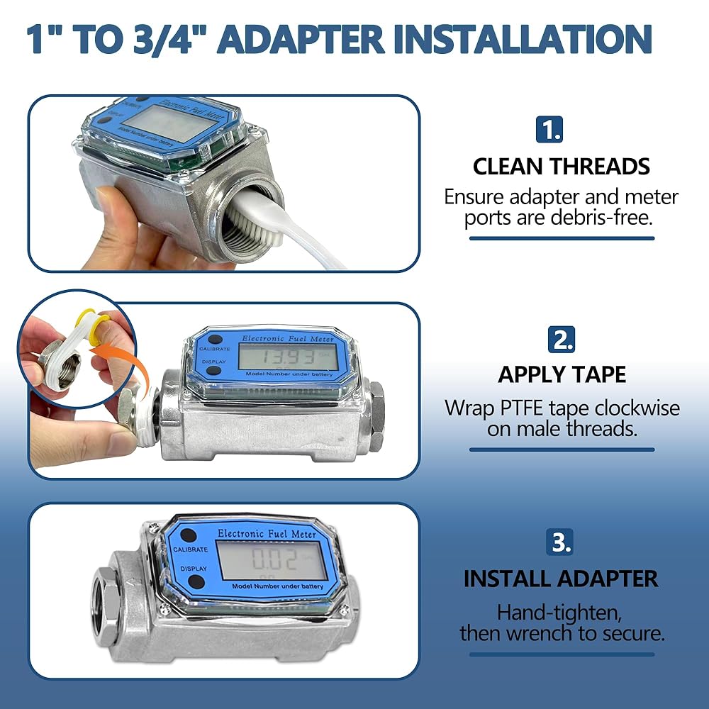1 Inch & 3/4 Inch: Our 1" NPT flow meter comes with 3/4" NPT adapter, providing versatility to accommodate different requirements