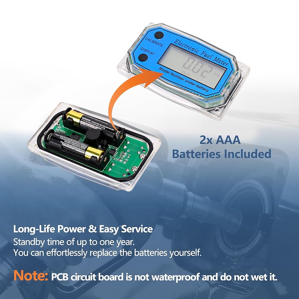 IPX4 Waterproof Rating: Note: IPX4, not IPX8. Do not immerse this flow meter in water, oil, or other liquids. It is not designed for submersion. To extend the lifespan of the built-in electronic board, please avoid splashing water on the display.